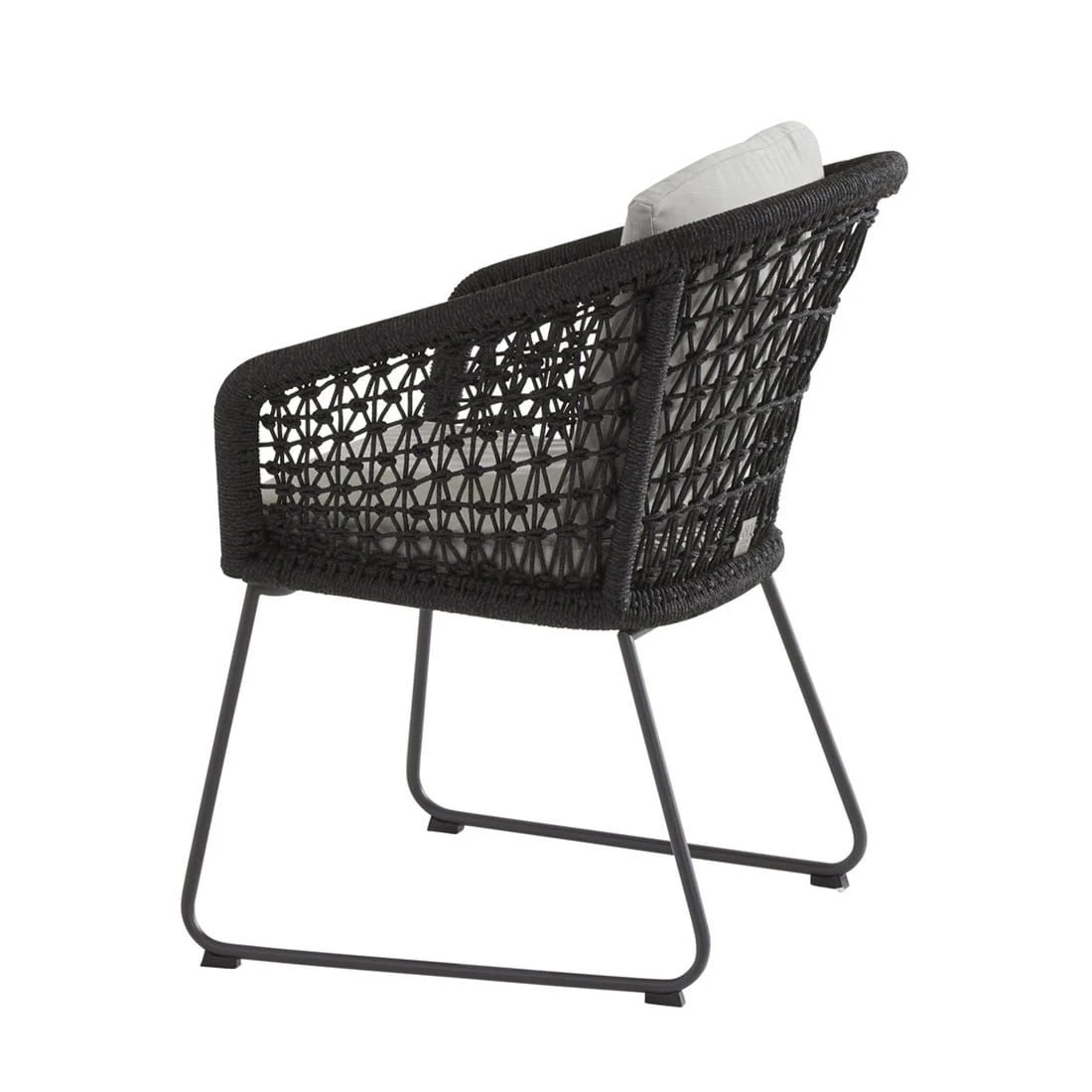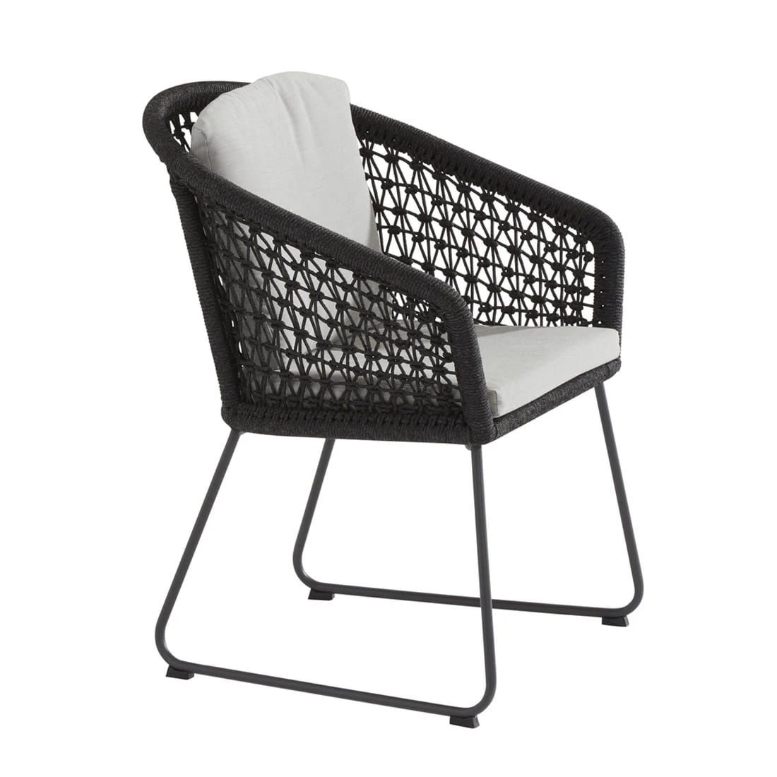 Das Gestell wird aus hochwertigem und rostfreiem Edelstahl hergestellt. Aufgrund des etwas höheren Eigengewichts, steht der Gartensessel dadurch besonders stabil und windsicher auf der Terrasse. Für eine attraktive Optik ist das Gestell im Farbton Schwarz gehalten. Die Sitzfläche wird aus moderner Rope-Bespannung gefertigt. Die Farbgestaltung der Sitzfläche in Anthrazit ist überaus ansprechend. Für die Bezüge wird Olefin verwendet. Der Marken-Outdoorstoff überzeugt mit einer hohen Witterungsbeständigkeit. Denn sowohl Sonne als auch Regen können dem robusten Outdoor-Stoff kaum etwas anhaben. Farblich begeistert der Bezug in elegantem Grau.