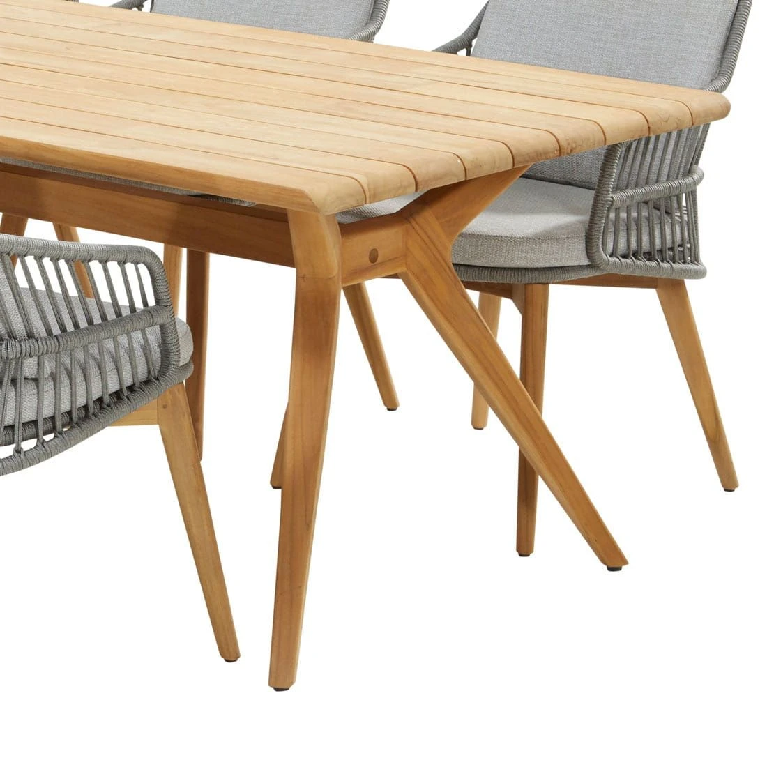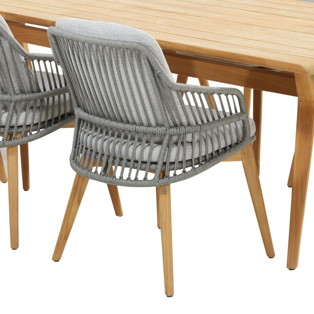Um das stabile Gestell der Sitzmöbel wird ein hochwertiges Rope-Geflecht gespannt. Die attraktive Rope-Bespannung, die das Sitzmöbel-Gestell aus Teakholz umgibt, rundet das Gesamtbild des Sets stilvoll ab. Sowohl die Gestelle als auch die Tischplatte werden aus Teakholz gefertigt. Somit gibt das Gartenmöbel-Set ein einheitliches Bild auf Ihrer Terrasse ab.