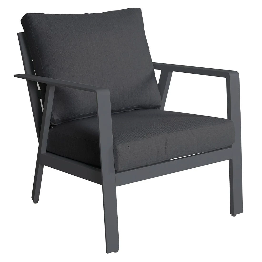 Das Gestell ist aus Aluminium gefertigt. Optisch begeistert das Gestell in der Farbe Anthrazit. Der Bezug der Dininglounge ist aus Kunstfaser gefertigt. Für eine längere Haltbarkeit empfehlen wir bei stärkerem oder lang anhaltendem Regen, die abnehmbaren Kissen im Innenraum zu lagern. Die Farbe des Bezugs ist Dunkelgrau. Die Tischplatte ist aus Sicherheitsglas gefertigt und dadurch für den Einsatz auf der Terrasse, im Garten und auf dem Balkon geeignet. Farblich überzeugt die Tischplatte in Grau.