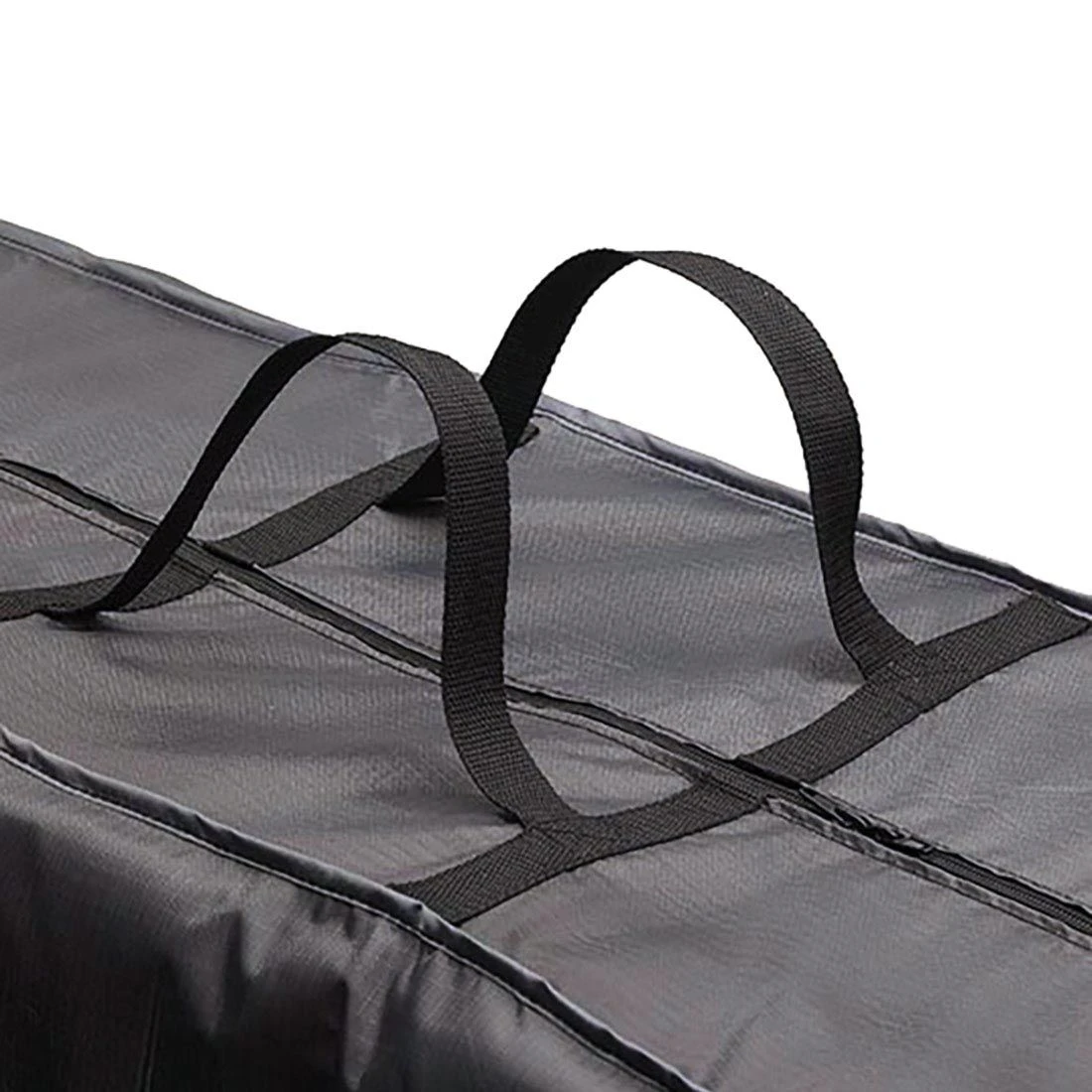 Um einen komfortablen Zugang zum Inhalt der Tragetasche zu haben, verfügt diese über zwei Reißverschlüsse. Abgerundet wird die Tragetasche für Auflagen durch verstärkte Griffe.
