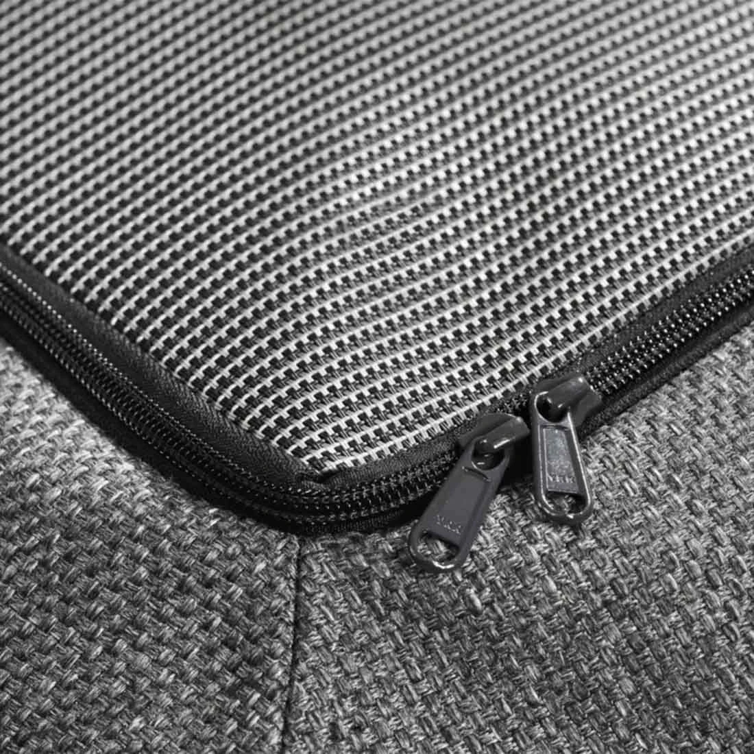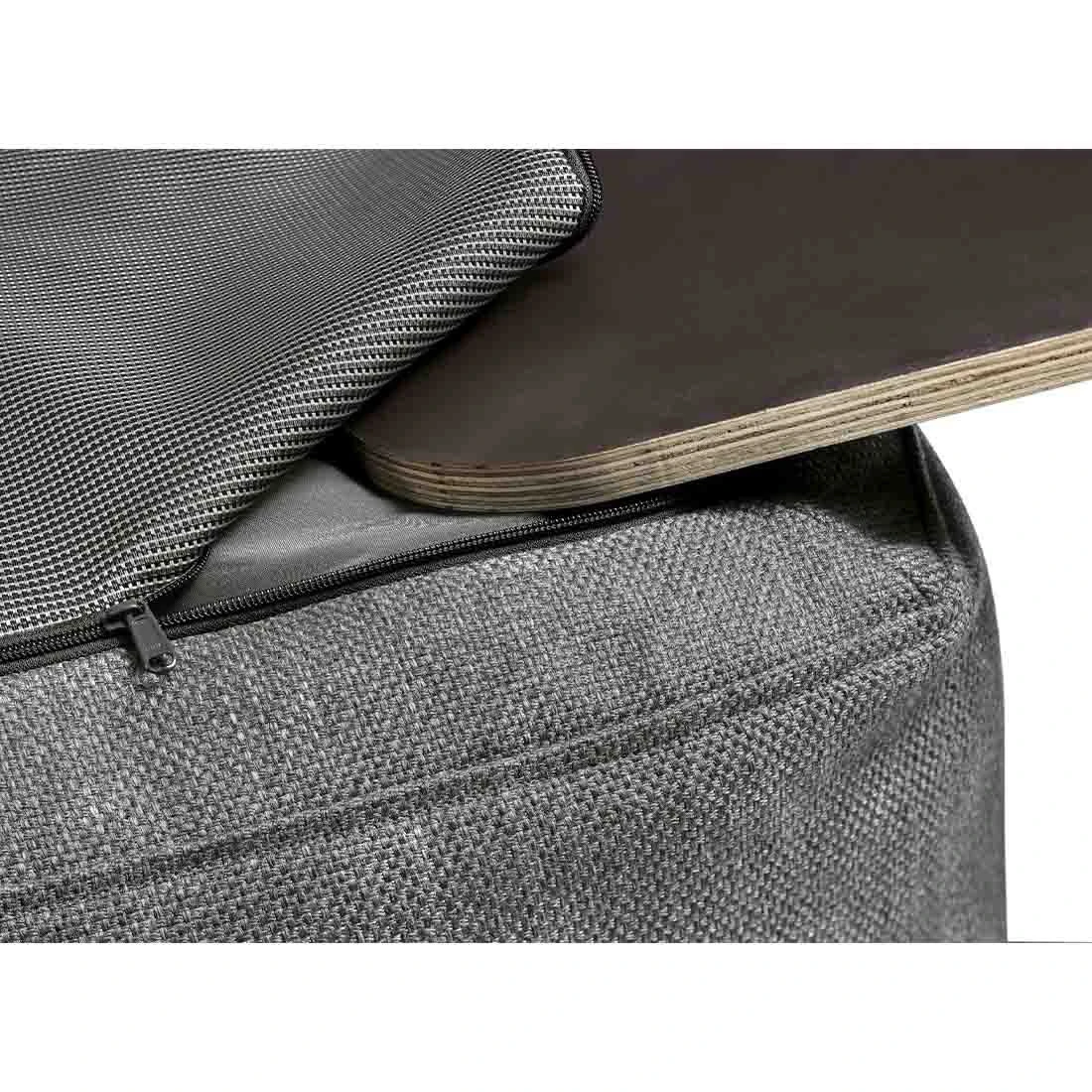 Der Bezug in der Farbe Coal ist aus hochwertiger Kunstfaser gefertigt. Dadurch ist die Außenhülle wasserundurchlässig, sodass Sie den Loungesessel auch bei länger andauernder Feuchtigkeit draußen belassen können.