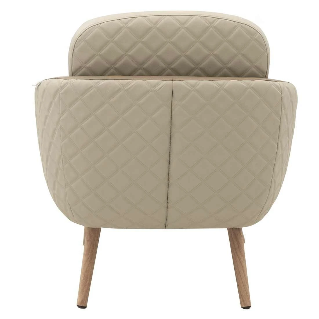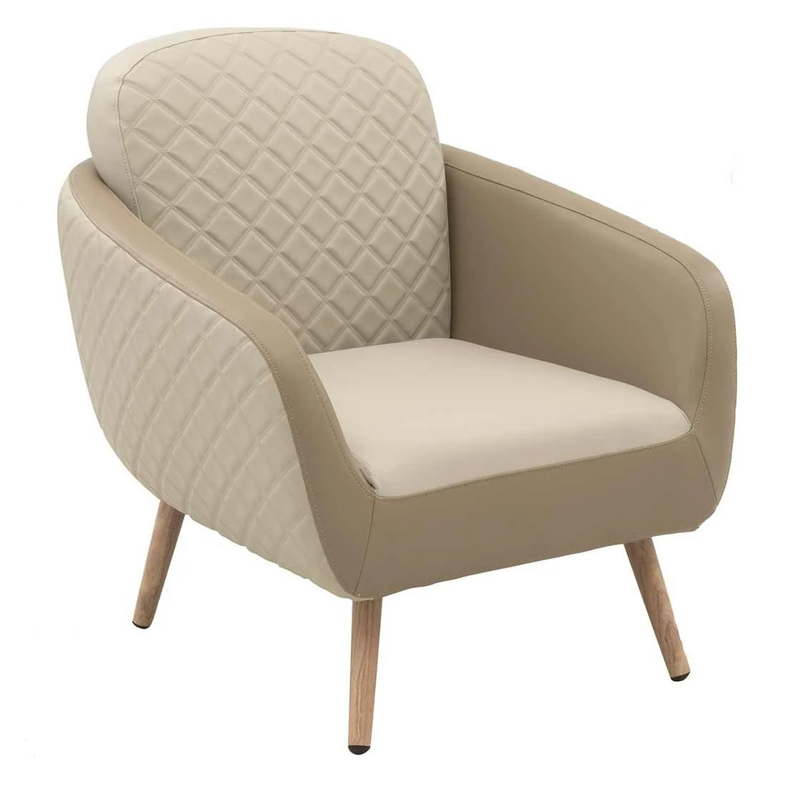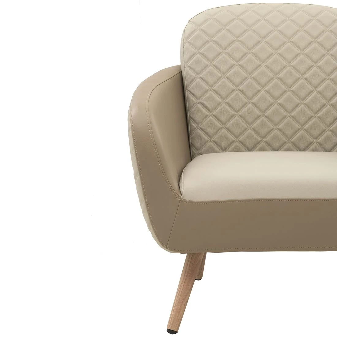 Der Kunstlederbezug ist zweifarbig und an Rücken- und Armlehne durch eine Steppung in Rautenform verziert. Er besteht aus MarinaPlus, einem für die Outdoor-Nutzung entwickelten synthetischen Leder, das Wind und Wetter sowie Hitze und Frost standhält. Dennoch ist das Material weich und komfortabel. Wer das Gartenmöbel dennoch schützen möchte, kann die dem Loungessel beiliegende Schutzhülle verwenden. Diese befindet sich unterhalb des Sessels in einer mit Reißverschluss gearbeiteten Tasche innerhalb des Gestells.