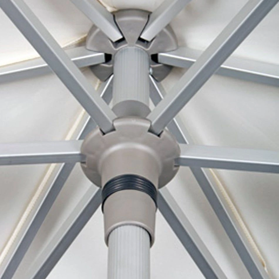 Der Stock der Schirme besteht aus leichtem, aber dennoch sehr robustem Aluminium. Die einfach zu handhabende „push-up“-Bedienung sorgt zusammen mit der einfachen Höhenverstellung durch ein Drehrad für keinerlei Bedienprobleme. Zudem ist das Schirmdach neigbar, um die Beschattung dem aktuellen Sonnenstand anzupassen.