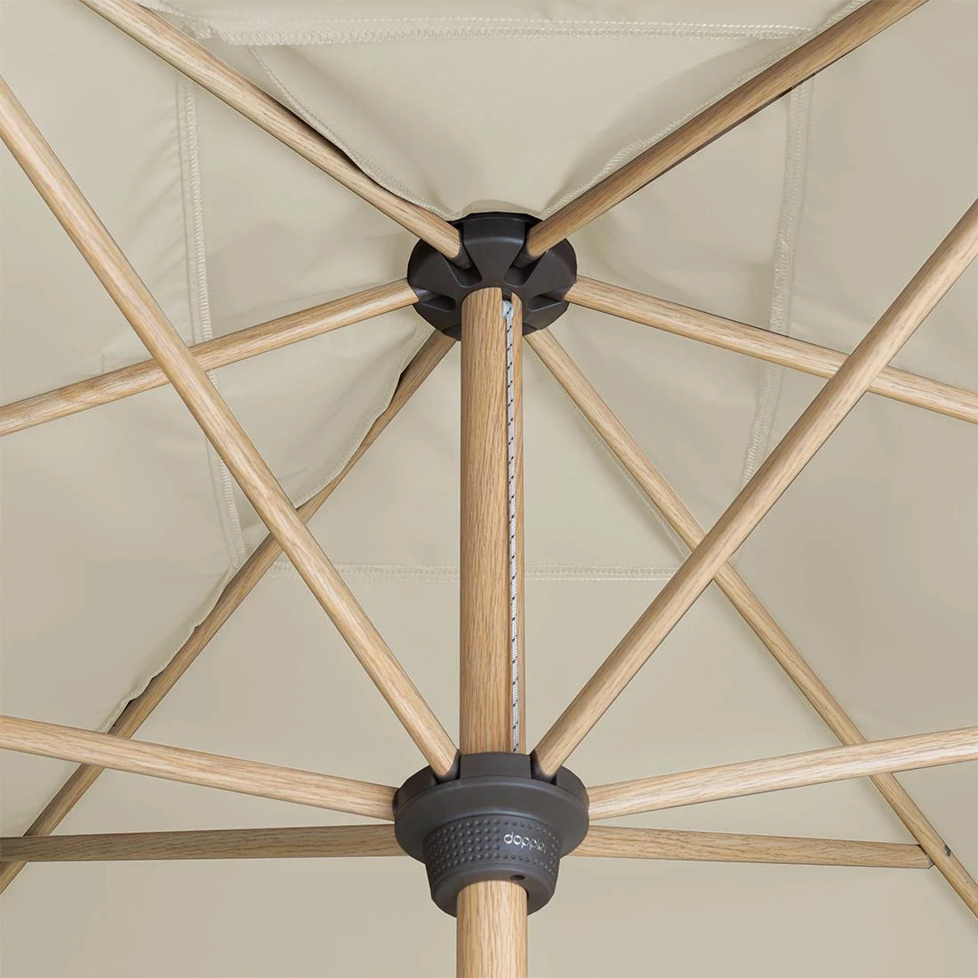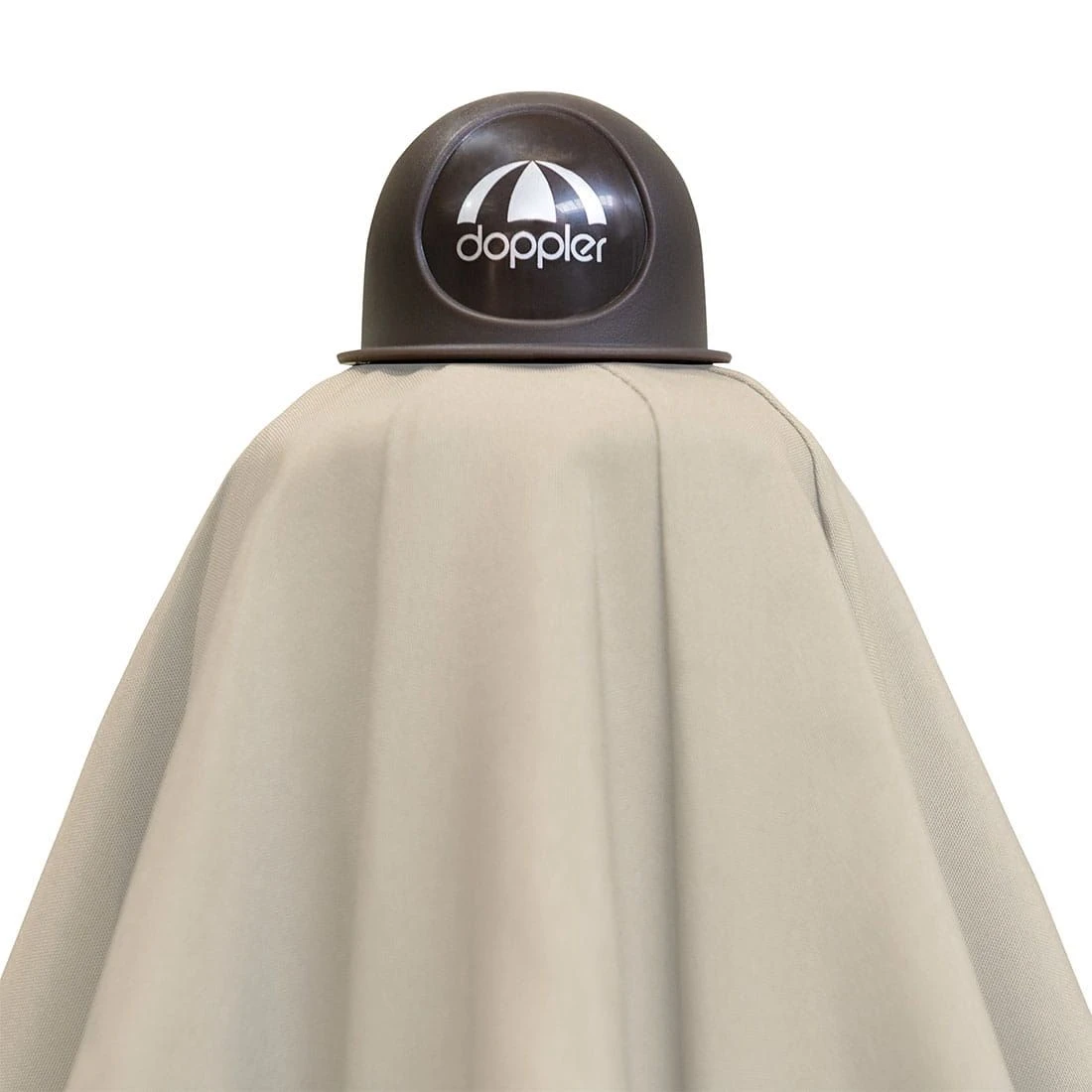 Die Neigung des Schirmdaches erfolgt per Kurbel. Nach Öffnen des Schirmdachs kann durch Weiterdrehen mittels der Kurbel die Dachneigung stufenlos eingestellt werden.