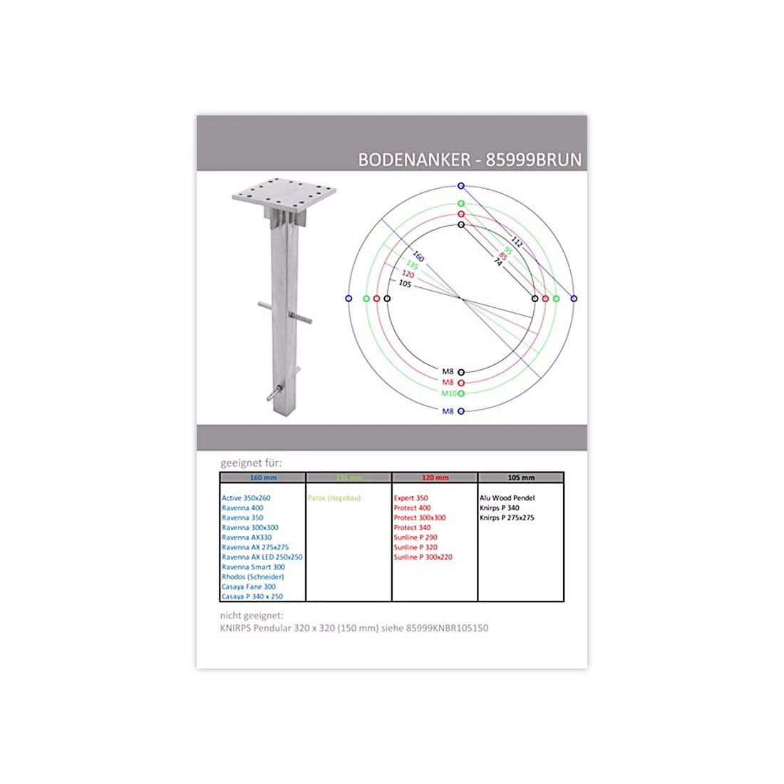 Bei Einsatz von Bodenhülsen empfehlen wir vor dem Einbetonieren eine Testmontage der Hülse an den Schirm.