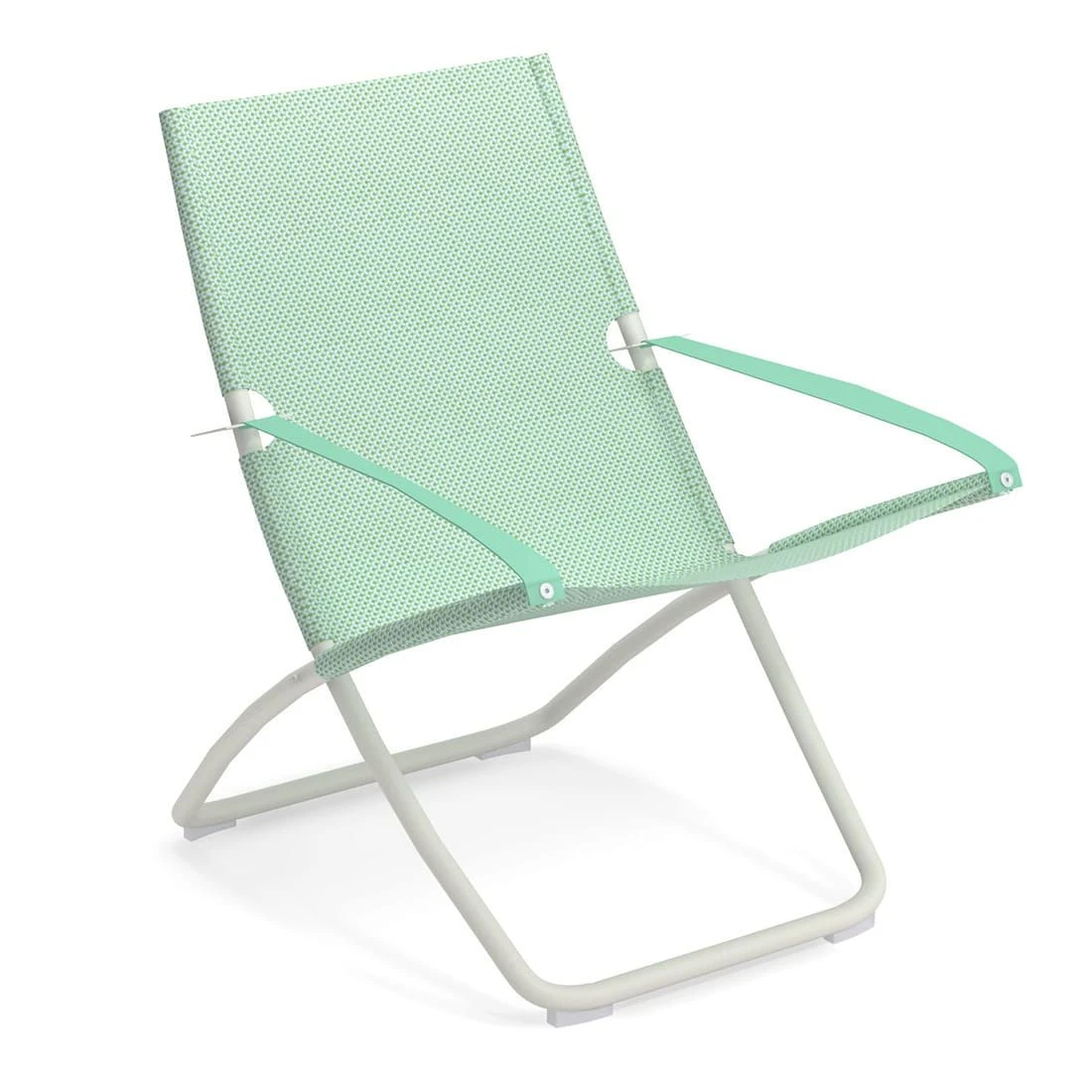 Das Gestell wird aus Stahl gefertigt und sorgt damit für stabilen Halt beim Sitzen. Für eine attraktive Optik ist das Gestell im Farbton Weiß gehalten. Die Sitzfläche wird mit Textilene bespannt. Dieses Material ist reiß- und wetterfest und zeichnet sich durch eine hohe Beständigkeit gegenüber Hitze und Frost aus. Darüber hinaus ist Textilene leicht zu säubern. Die Sitzfläche hat eine elegante Farbgebung in Grün.