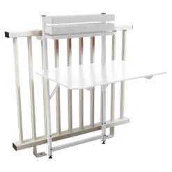 Seine Stabilität erhält der Tisch durch das robuste Tischgestell aus Stahl. Komplettiert wird das Gesamtbild durch das moderne und außergewöhnliche Tischgestell in X-Form (sogenannten Cross Legs). Die Tischplatte wird aus robustem Stahl gefertigt, der für eine bessere Haltbarkeit zusätzlich beschichtet wird. Farblich ist die Platte in Baumwollweiß gehalten. Mit der rechteckigen Form lässt sich der Balkontisch platzsparend in Ecken oder an Häuserwänden aufstellen.