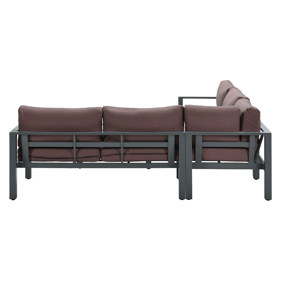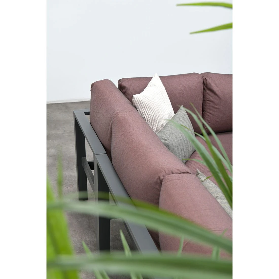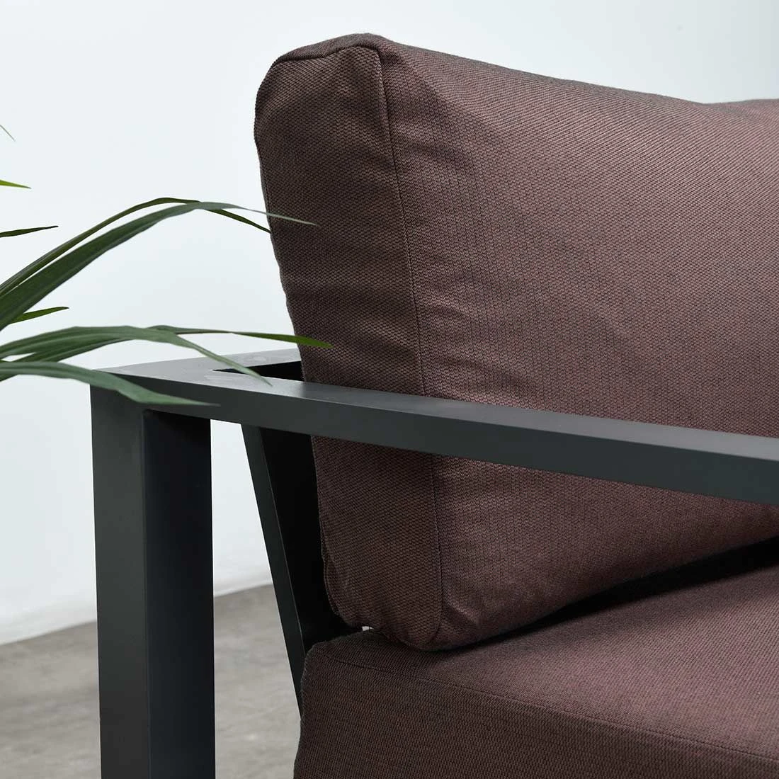 Für das Gestell und die Tischplatte kommt Aluminium zum Einsatz. Damit die Ecklounge optisch ansprechend ist, sind das Gestell und die Tischplatte im Farbton Carbon Black gehalten. Der Bezug der Ecklounge ist aus Polyester gefertigt. Für eine längere Haltbarkeit empfehlen wir bei stärkerem oder lang anhaltendem Regen, die abnehmbaren Kissen im Innenraum zu lagern. Die Farbe des Bezugs ist Copper.