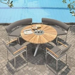Zebra Poker Klapptisch Ø110 Cm Teak Mit Edelstahlbeschlägen Natur