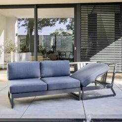 Kettler Ocean Skid Modular Endteil Aluminium/Olefin Mit Teak-Leiste Anthrazit/Hellgrau Meliert