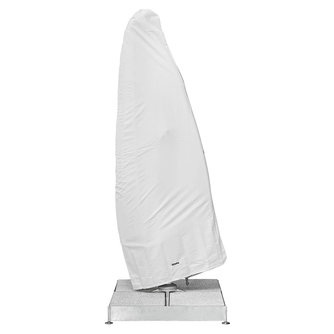 GLATZ bietet für dieses Schirmmodell eine Schutzhülle mit hohen Lichtechtheitfaktor 6 an, extrem resistent gegen das Einwirken von UV-Strahlung auf den Schirmbezug. Zudem ist das Material der Hülle mit einer speziellen Ripstop-Technik gewoben, die aufgrund des Einarbeitens von dickeren Fäden in dem sonst dünnen Gewebe besonders reissfest ist. Eine Polyurethan-Beschichtung in der Hüllen-Innenseite schützt den Schirm vor Feuchtigkeit von aussen.