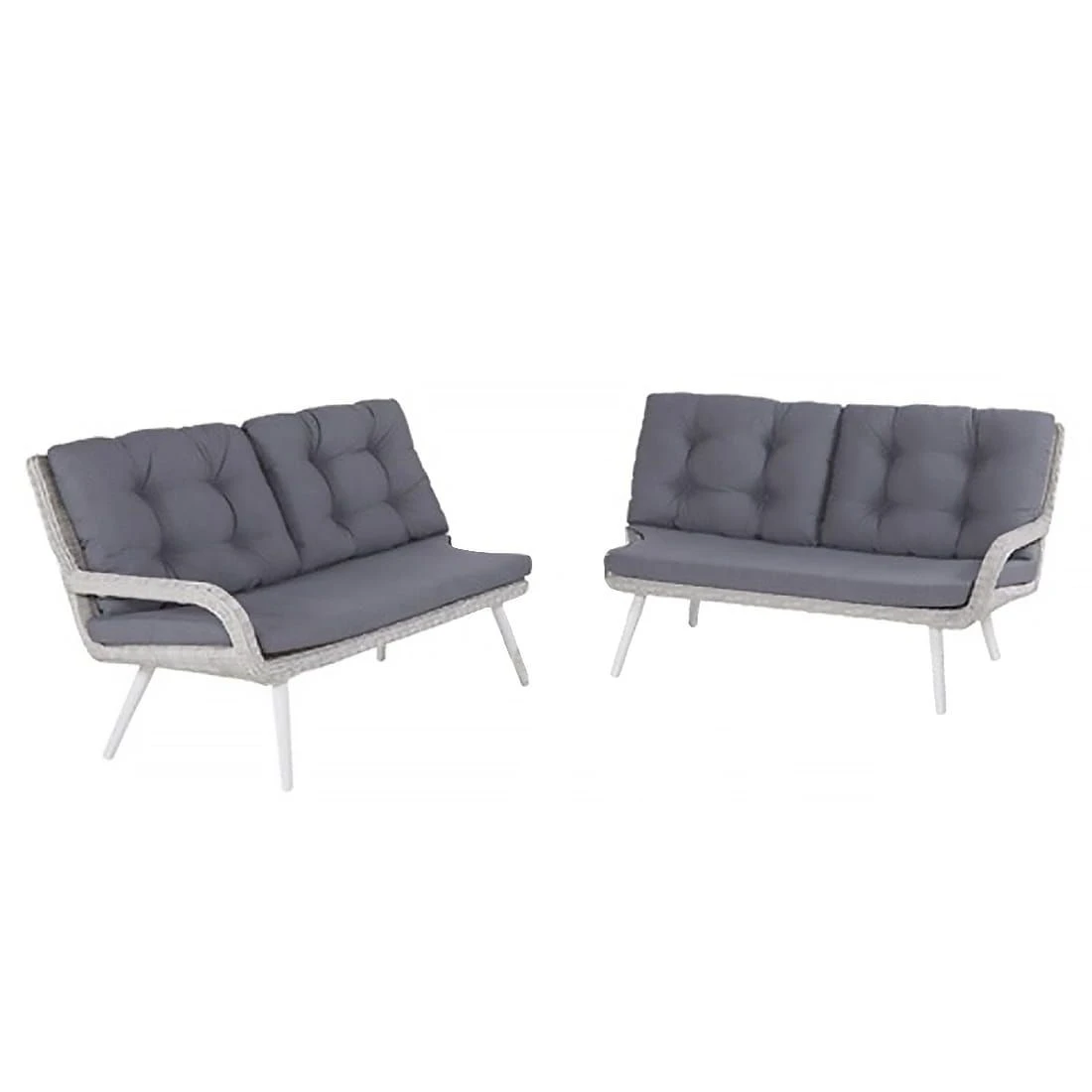 Das Gestell besteht aus Aluminium. Optisch begeistert das Gestell in der Farbe Weiß. Das Gestell, das mit hochwertigem Polyrattan umflochten ist, bringt ein exklusives Ambiente auf Ihre Terrasse. Dieses Material zeichnet sich durch eine hohe Wetterbeständigkeit aus. Farblich ist der Korpus des Gartensofas in ansprechendem Ash White gehalten. Die Bezüge sind aus dem Marken-Outdoorstoff Olefin gefertigt. Das Material verbindet eine angenehme Stoffoberfläche mit hoher Witterungsbeständigkeit. Denn sowohl Sonne als auch Regen können dem robusten Outdoor-Stoff kaum etwas anhaben. Die Farbe des Bezugs ist Grau.