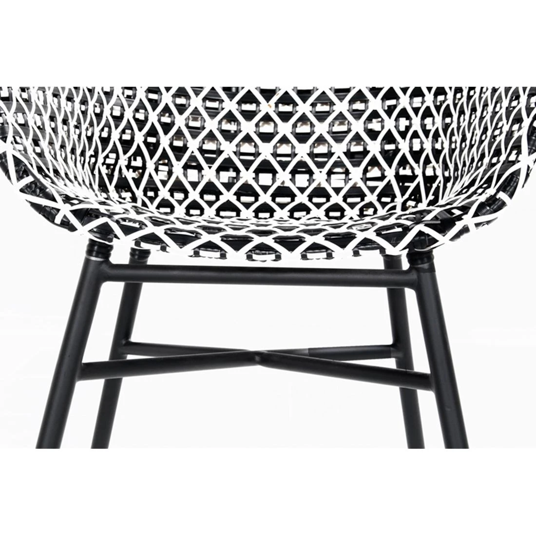 Der Korpus und die Sitzfläche sind aus Rope gefertigt. Für die Herstellung des Gestells wird hochwertiges und wetterfestes Aluminium verwendet. Für eine attraktive Optik ist das Gestell im Farbton Schwarz gehalten. Die Farbgestaltung der Sitzfläche in Schwarz-Weiß ist äußerst ansprechend.