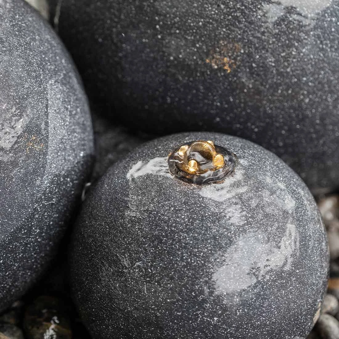 Die drei schwarzen Kugeln wirken, als wären sie aus edlem Granitstein gefertigt. Selbst beim Anfassen spüren Sie kaum einen Unterschied zu echtem Stein. Es handelt sich dabei aber um das sogenannte Material Polystone, das sehr langlebig und robust ist. Polystone wird aus mineralischem Material gefertigt, das mit einem Acrylharz und Farbpigmenten vermischt wird. So entsteht die charakteristische Steinoptik. Der Vorteil: Im Gegensatz zu natürlichen Steinen ist Polystone resistent gegenüber Säuren und Laugen und verfärbt sich in der Regel nicht.