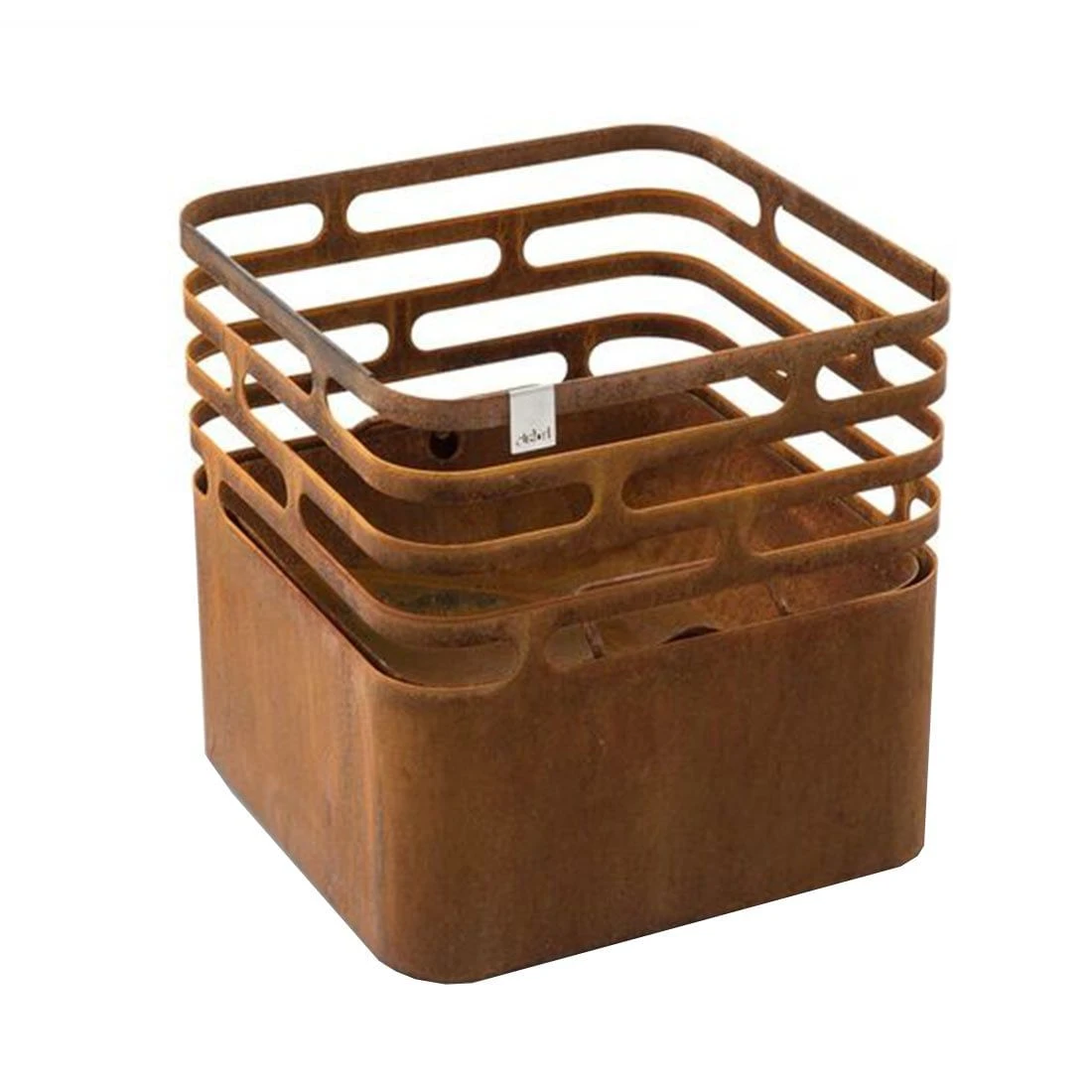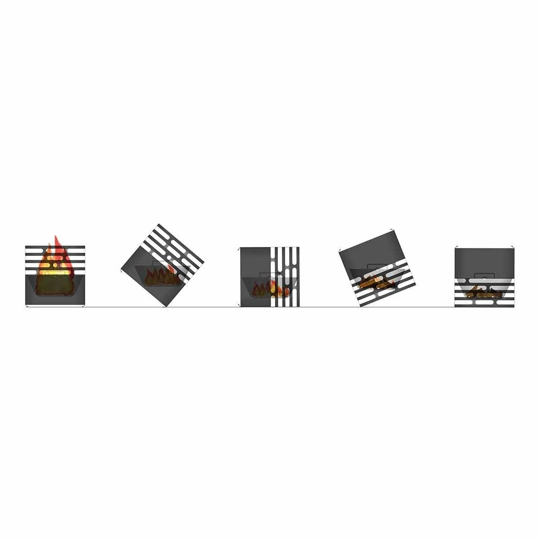 Sicher & sauberJeder kennt den atmosphärischen Zauber eines offenen Feuers. Doch wie wird das Feuer anschließend sicher und sauber beendet, vielleicht sogar weil Wind aufzieht und Funkenflug überhand nimmt? Cube wird einfach umgedreht, die Feuerschale bleibt dabei schwerkraftbedingt immer im Lot, das Feuer erstickt und geht aus.