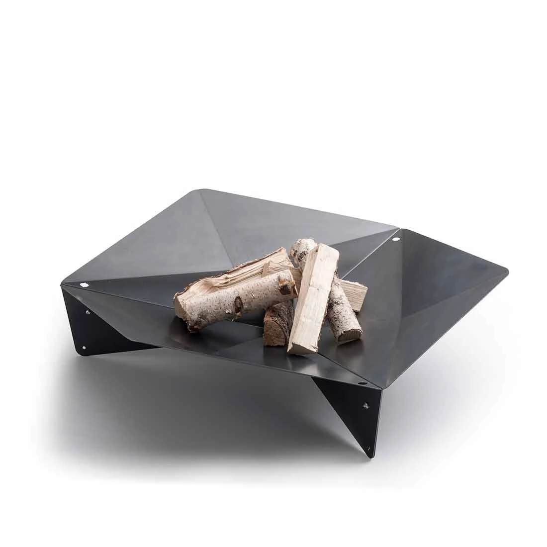 TRIPLEEine Hommage an offene Feuerstellen – die ursprünglichste Form von Wärme und Gemütlichkeit. Interpretiert in kantiger Klarheit, aus massivem Corten-Stahl, kultiviert die Feuerschalenserie TRIPLE, durch begeisternd, simple Funktionalität die archaische Wärmequelle. Drei identische, in sich facettierte Segmente vervollständigen sich, in wenigen Handgriffen, zu einem soliden großen Ganzen. Aus der Zerlegbarkeit resultiert Mobilität und ressourcenschonender Transport. Der adaptierbare Grillrost ist stufenlos höhenverstell- und schwenkbar. Auf der Ablagefläche finden eine Kanne Tee, Glühwein oder Grillgut Platz, genauso kann diese aber auch nach innen geschwenkt und ein feuriger Eintopf gekocht werden.