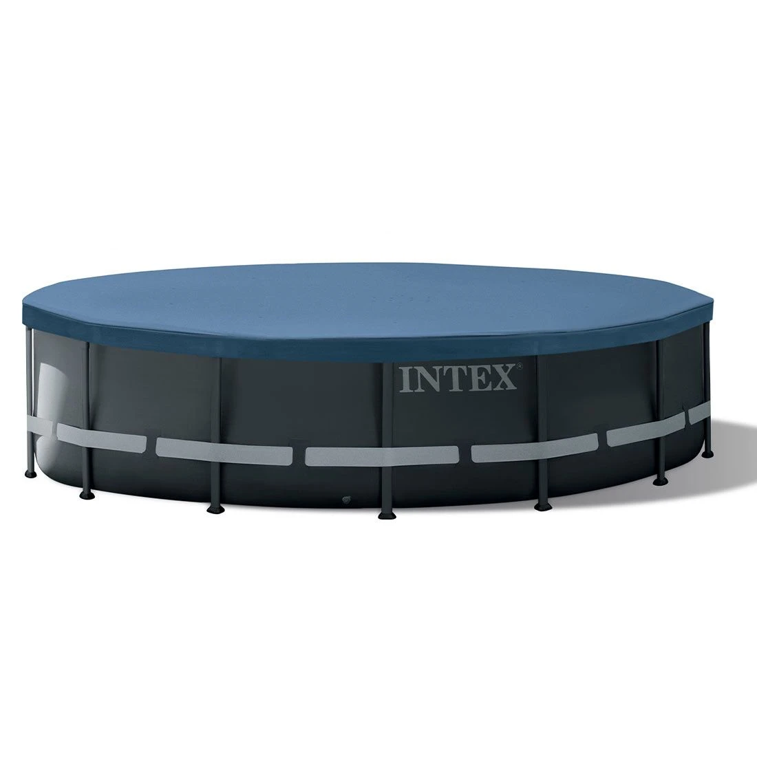 Selbstverständlich sind auch eine Sicherheitsleiter (abnehmbare Stufen verhindern, dass Kinder unbeobachtet in den Pool steigen können), eine praktische Abdeckhaube und eine stabile Bodenplane im Lieferumfang dieses INTEX Pools enthalten.