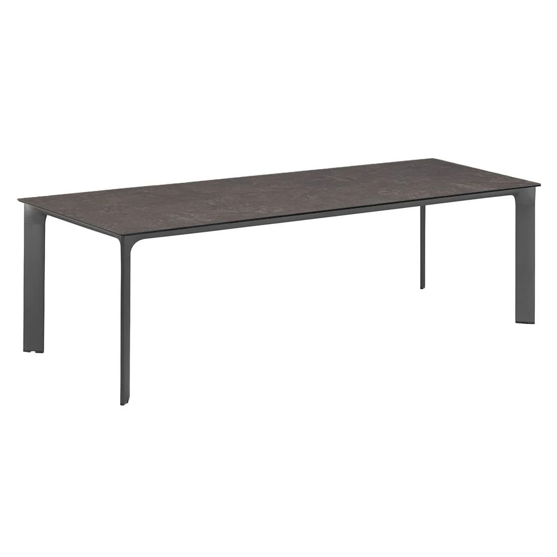 Mit seinem Gestell-Material Aluminium zĂ€hlt der Gartentisch Diamond zu den modernen Tischmodellen, die sich im Garten komfortabel aufstellen und bewegen lassen. Die Tischplatte ist aus wertigem Keramik-Glas gefertigt. Im Gegensatz zu vielen anderen Tischplattenmaterialien sind solche Platten Ă€uĂerst kĂ€lte- und hitzebestĂ€ndig und zĂ€hlen somit zu den robustesten Tischplatten auf dem Markt. Farblich sind Gestell und Tischplatte einheitlich gestaltet und begeistern in Anthrazit. Klassisch aus vier Tischbeinen besteht das Gestell des Tisches. Der Gartentisch ist klassisch rechteckig gestaltet.