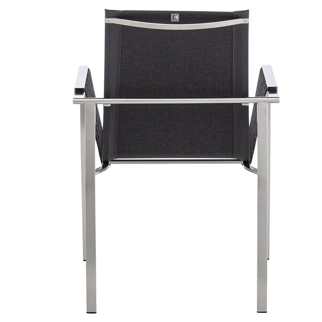 Damit der Stapelsessel optisch ansprechend ist, sind die Sitzfläche und der Bezug im Farbton Charcoal gehalten. Das Gestell des Stapelsessels besteht aus hochwertigem und rostfreiem Edelstahl. Neben seiner ansprechenden Optik bietet dieses Material auch eine hohe Stabilität. Farblich ist dieses in Silber gehalten. Für die Bespannung der Sitzfläche verlässt sich der Hersteller auf hochwertiges Textilene. Es zeichnet sich durch eine hohe Robustheit gegenüber Hitze und Frost aus und ist leicht zu reinigen.
