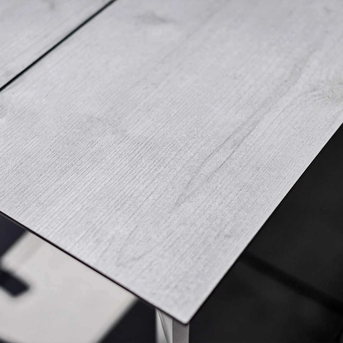 Die stabile Tischplatte aus leicht zu pflegendem HPL-Kunststoffverbund ist besonders für den Einsatz unter freiem Himmel und das Essen draußen sehr gut geeignet. Für ein stimmiges Gesamtbild erscheint die Platte in der Farbe Grau. Die Tischplatte ist klassisch rechteckig gestaltet.