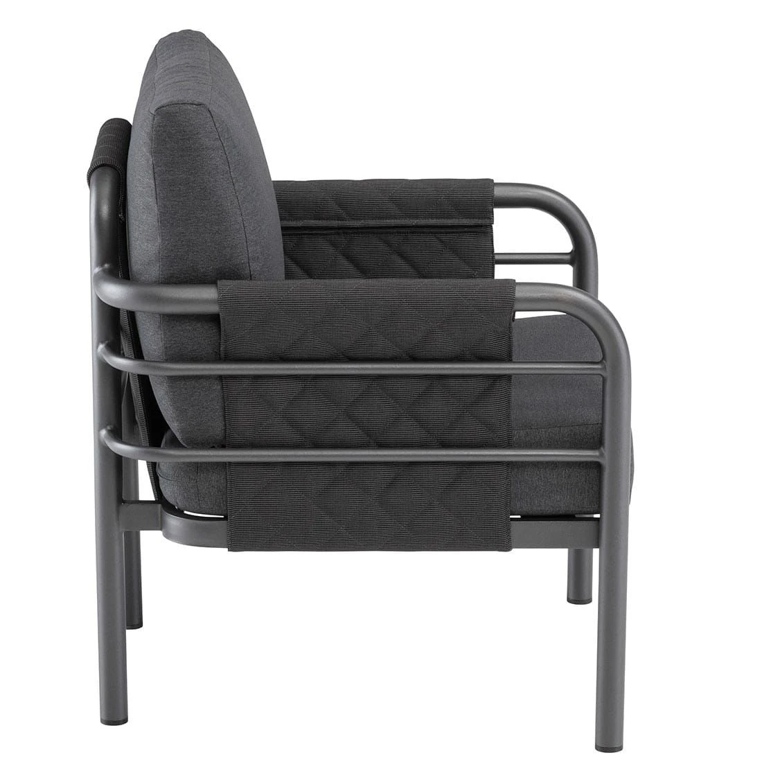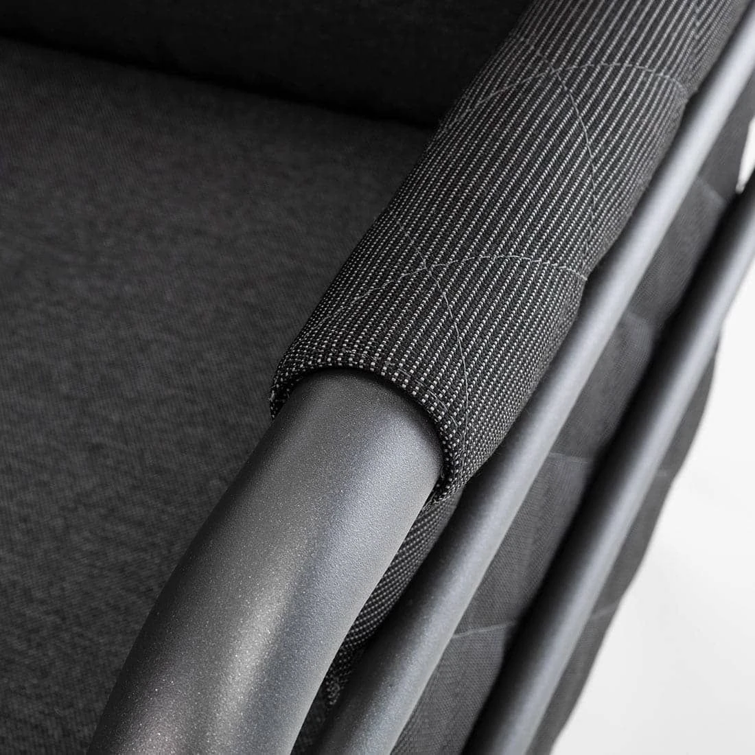 Für die Herstellung des Gestells wird hochwertiges und wetterfestes Aluminium verwendet. Für eine attraktive Optik ist das Gestell im Farbton Anthrazit gehalten. Die Sitzfläche hat eine schöne Farbgebung in Charcoal. Als hochwertiges Material für den Bezug kommt ein Polyester-Stoff zum Einsatz. Er ist sehr strapazierfähig und bietet somit die idealen Voraussetzungen für den Einsatz im Freien.