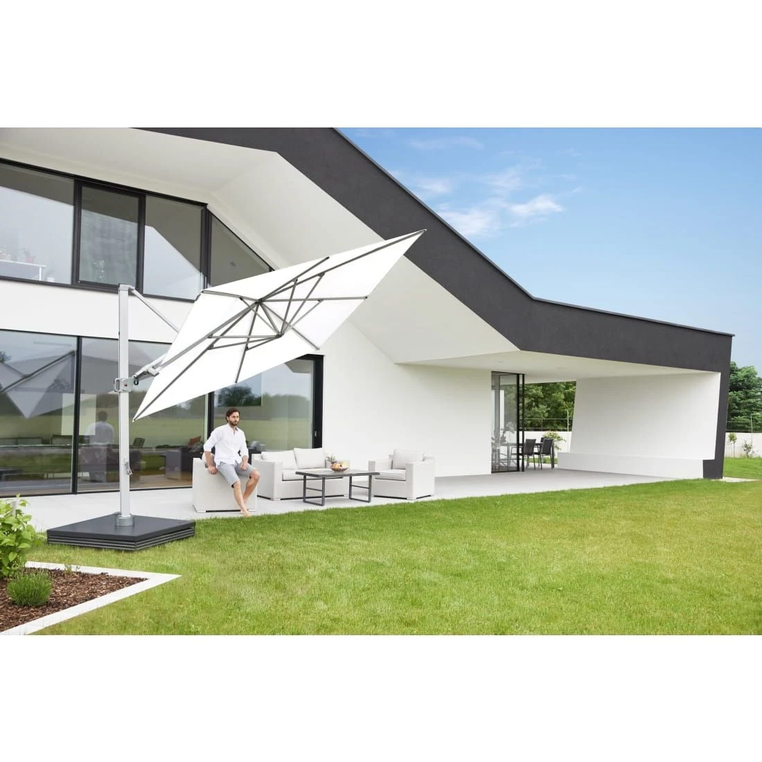 Der Sonnenschirm ist in fünf Farben – hellgrau, dunkelgrau, natur, weiß und bordeaux lieferbar. Ein hoher Bedienkomfort stehen bei diesem innovativen Markenprodukt im Fokus. Überzeugen Sie sich !