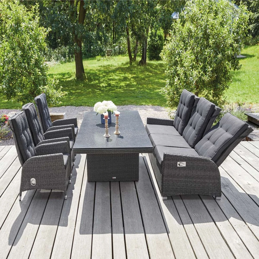 Sie können das Gartensofa individuell verstellen und daher immer die ideale Sitz- bzw. Liegeposition genießen – ganz gleich, ob Sie sich sonnen, lesen oder einfach entspannen möchten. Die Rückenlehnen des Gartensofas können Sie ganz bequem stufenlos verstellen. Damit Sie lange Freude an Ihrem neuen Loungemöbel haben, können Sie durch die Verwendung einer passenden Abdeckhaube die Lebensdauer verlängern.