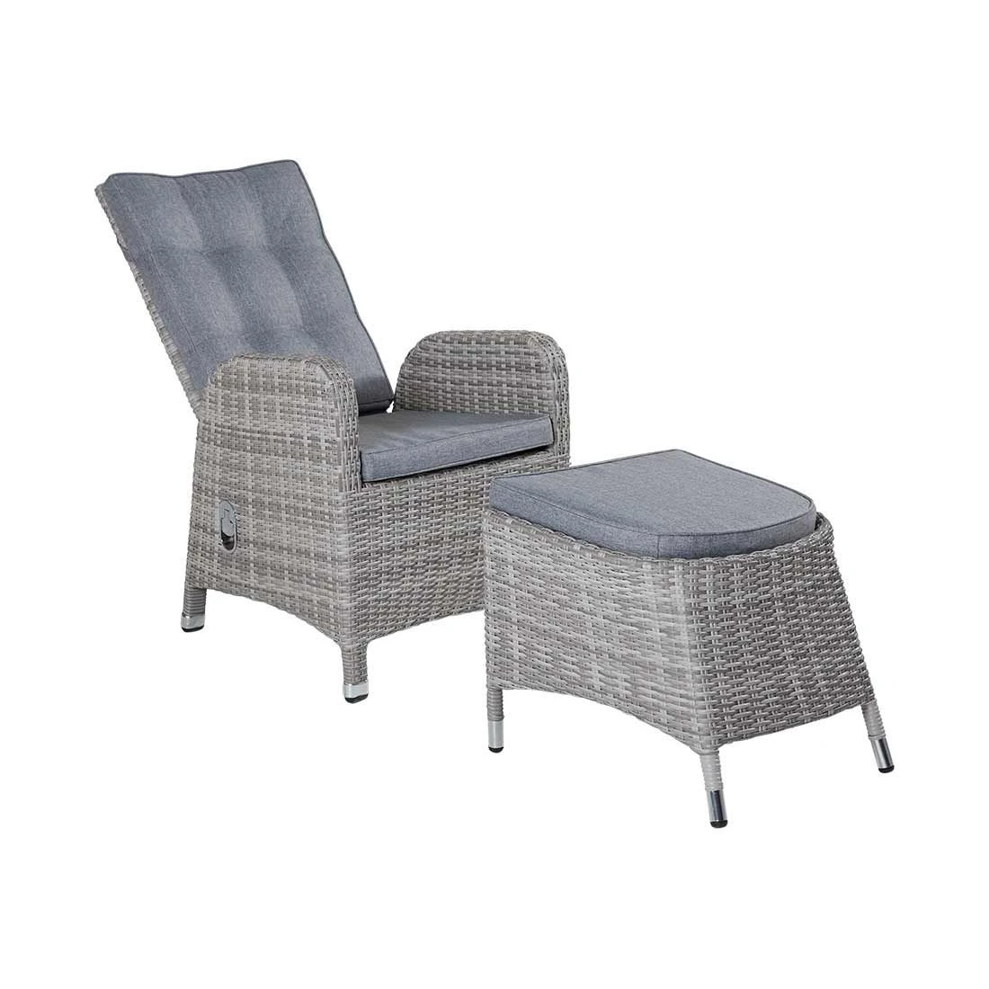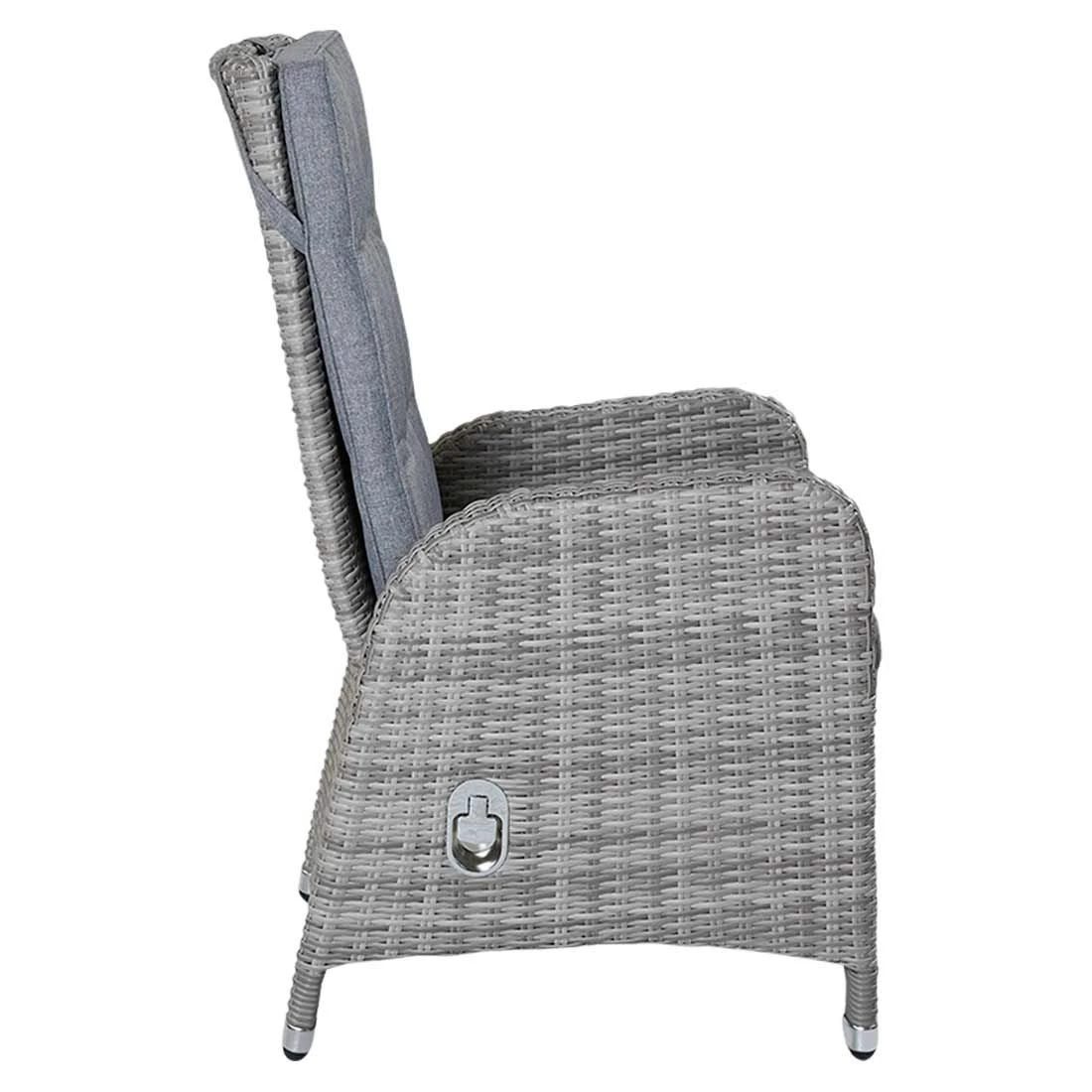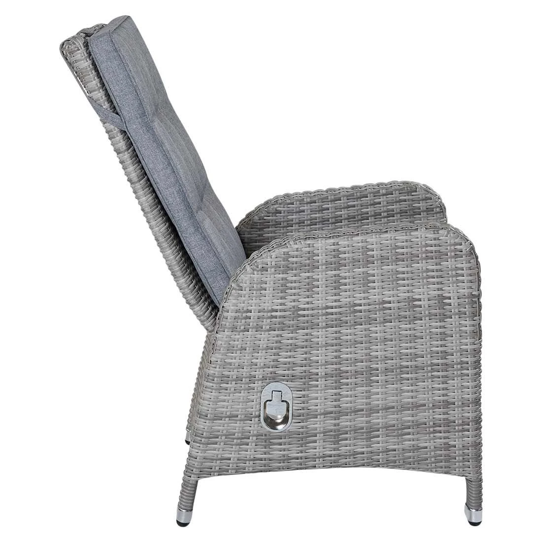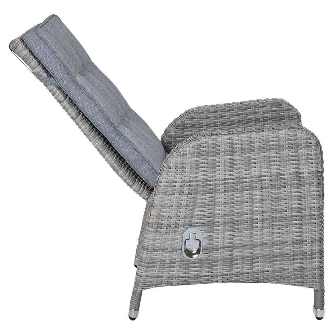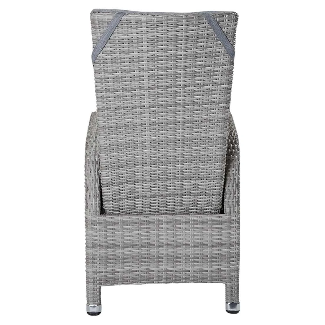 Für den Korpus und die Sitzfläche kommt Polyrattan-Geflecht zum Einsatz. Das Gestell wird aus Aluminium gefertigt. Das geringe Eigengewicht des Materials macht den Gartensessel zu einem robusten, aber dennoch leicht zu transportierenden Sitzmöbel auf Ihrer Terrasse. Als hochwertiges Material für den Bezug kommt ein Polyester-Stoff zum Einsatz. Er ist sehr strapazierfähig und bietet somit die idealen Voraussetzungen für den Einsatz im Freien. Farblich begeistert der Bezug in elegantem Light Grey. Damit der Gartensessel optisch ansprechend ist, sind das Gestell und die Sitzfläche im Farbton Grau gehalten.