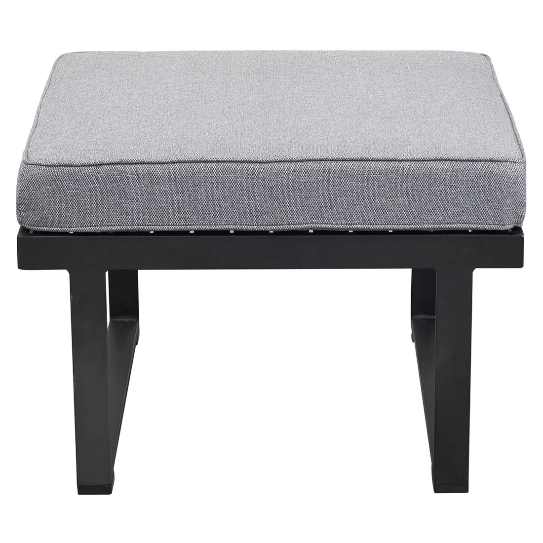 Das Gestell besteht aus pflegeleichtem und wetterfestem Aluminium in der Farbe Schwarz. Als hochwertiges Material für den Bezug kommt ein Polyester-Stoff zum Einsatz. Er ist sehr strapazierfähig und bietet somit die idealen Voraussetzungen für den Einsatz im Freien. Farblich begeistern die Bezüge in elegantem Salz & Pfeffer. Das robuste Kufengestell lässt sich hervorragend in moderne Stile integrieren. Der Gartenhocker ist bis zu einem Gewicht von 30 kg belastbar. Die Sitzbreite von 70 cm und die Sitztiefe von 70 cm machen den Gartenhocker besonders komfortabel. Die Sitzhöhe liegt zudem bei angenehmen 37,5 cm.