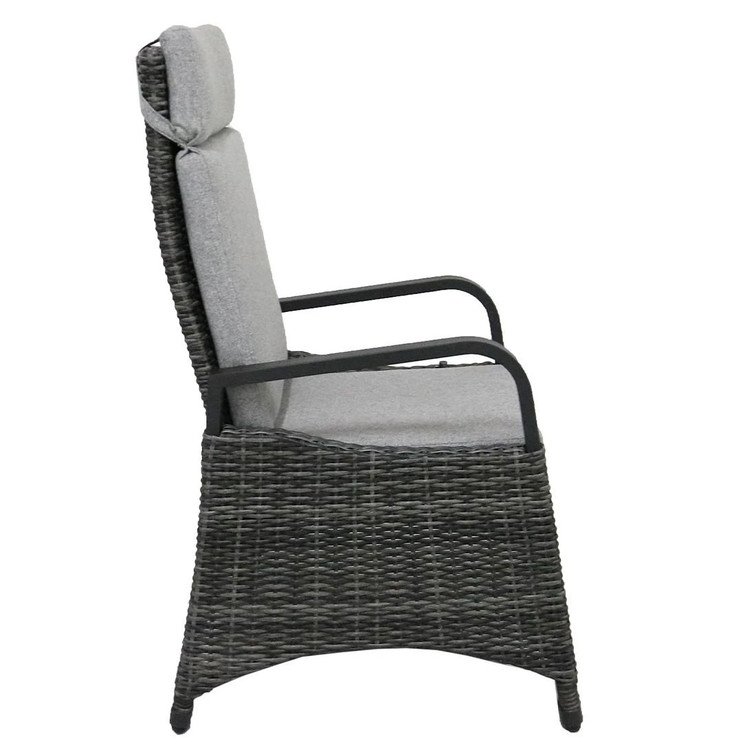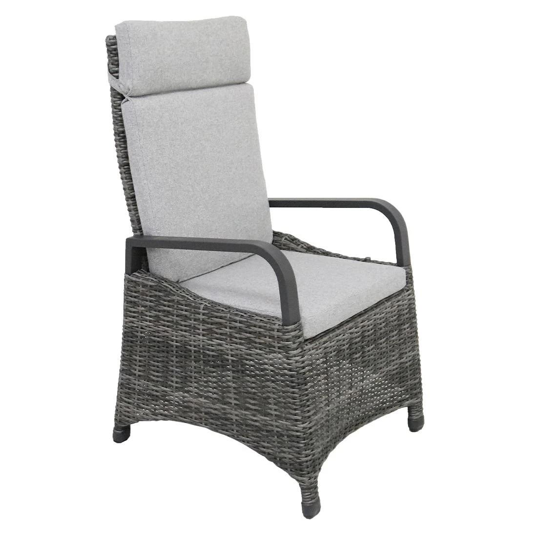 Das Gestell besteht aus pflegeleichtem und wetterfestem Aluminium. Für eine attraktive Optik ist das Gestell im Farbton Anthrazit gehalten. Die Sitzfläche des Gartensessels besteht aus exzellentem Polyrattan. Ein Material, das sich durch seine lange Haltbarkeit auszeichnet. Die Sitzfläche hat eine attraktive Farbgebung in Omega-Anthrazit. Klassisch aus vier Beinen besteht das Gestell des Gartensessels. Als hochwertiges Material für den Bezug kommt ein Polyester-Stoff zum Einsatz. Er ist sehr strapazierfähig und bietet somit die idealen Voraussetzungen für den Einsatz im Freien. Farblich begeistert der Bezug in elegantem Salz & Pfeffer.