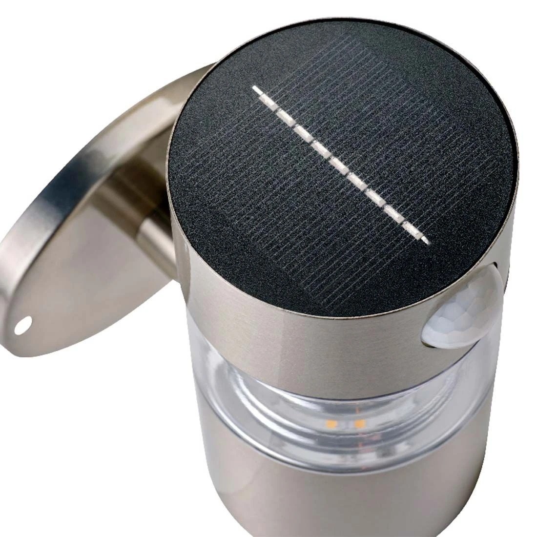 Der Clou: Im oberen Bereich der Wandleuchte befindet sich ein Bewegungssensor, sodass Sie Ihre Gäste immer im perfekten Licht an der Haustür empfangen können. Aber auch an der Garagenwand oder auf der Terrasse macht die Wandleuchte eine hervorragende Figur. Um die Stromversorgung brauchen Sie sich bei diesem Modell nicht kümmern, denn das integrierte Solarpanel sorgt für die benötigte Energie.