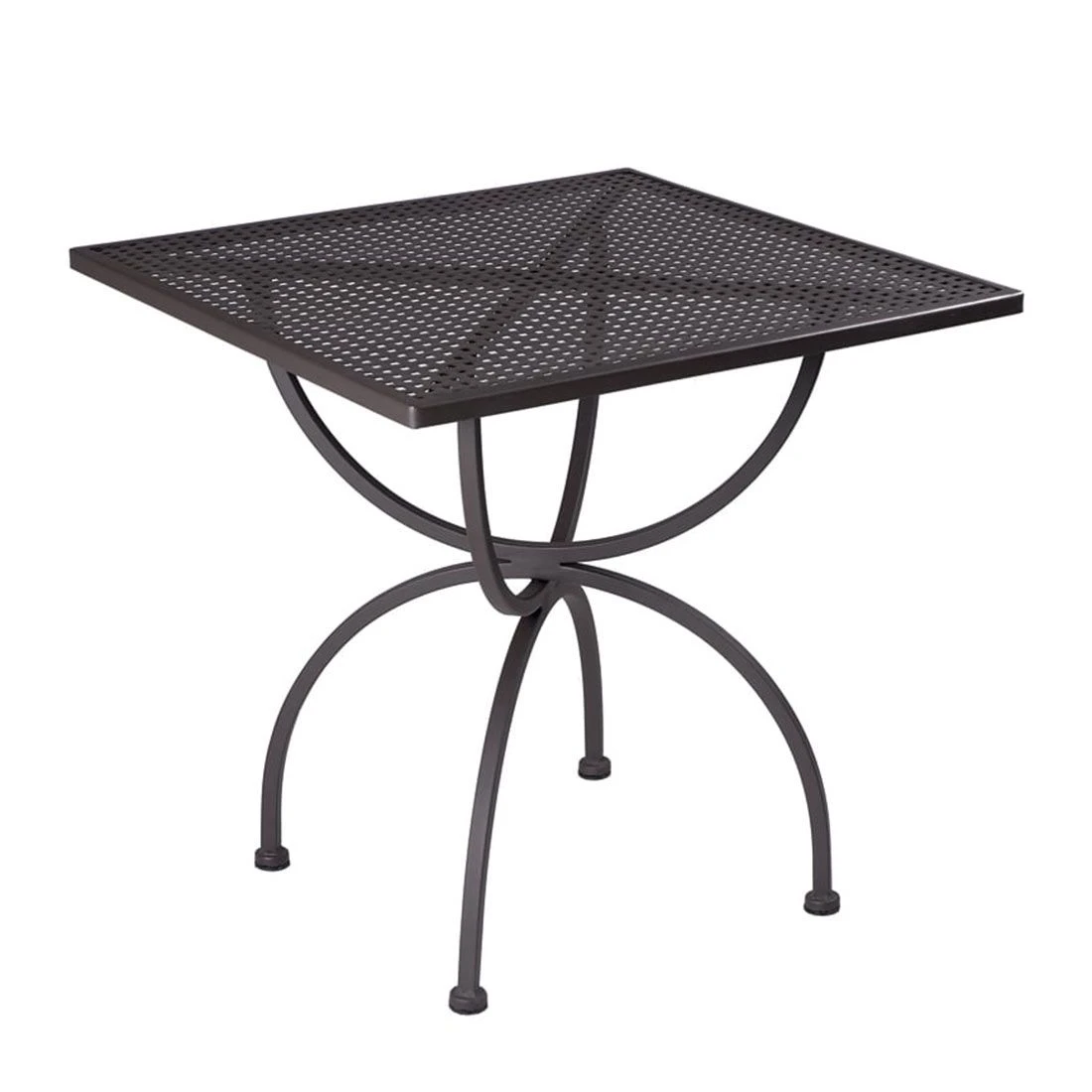 Zum besonderen Highlight wird der Gartentisch dank des Gestells aus hochwertigem Schmiedeeisen. Dieses verleiht diesem Modell eine verträumte Optik. Die Tischplatte wird aus robustem Stahl gefertigt, der für eine bessere Haltbarkeit zusätzlich beschichtet wird. Farblich sind Gestell und Tischplatte einheitlich gestaltet und begeistern in Marone Antik. Dass ein Möbelstück auch ein Hingucker sein kann, beweist dieses Modell mit seinem außergewöhnlichen Gestell in X-Form. Der Gartentisch ist klassisch quadratisch gehalten.