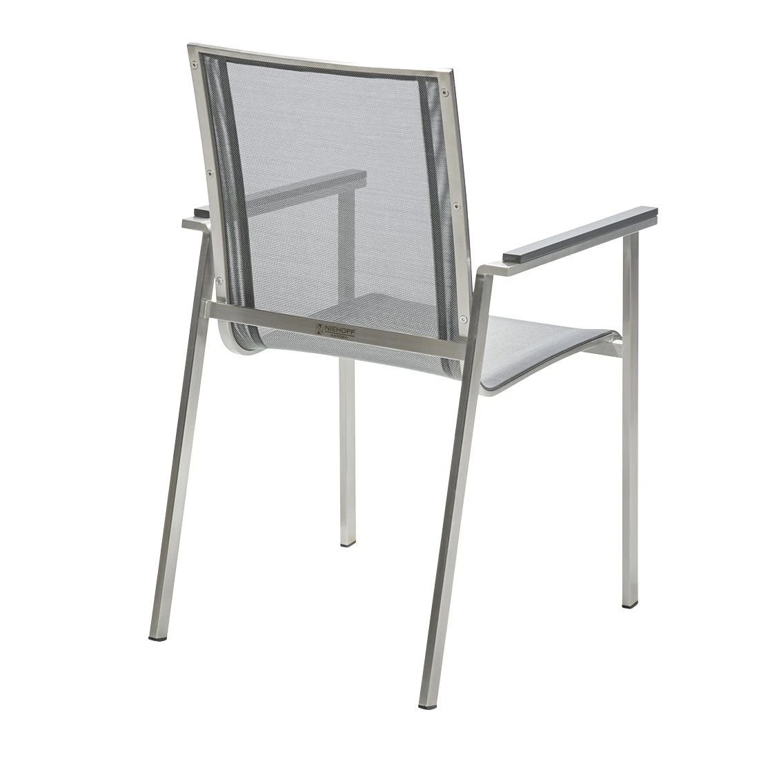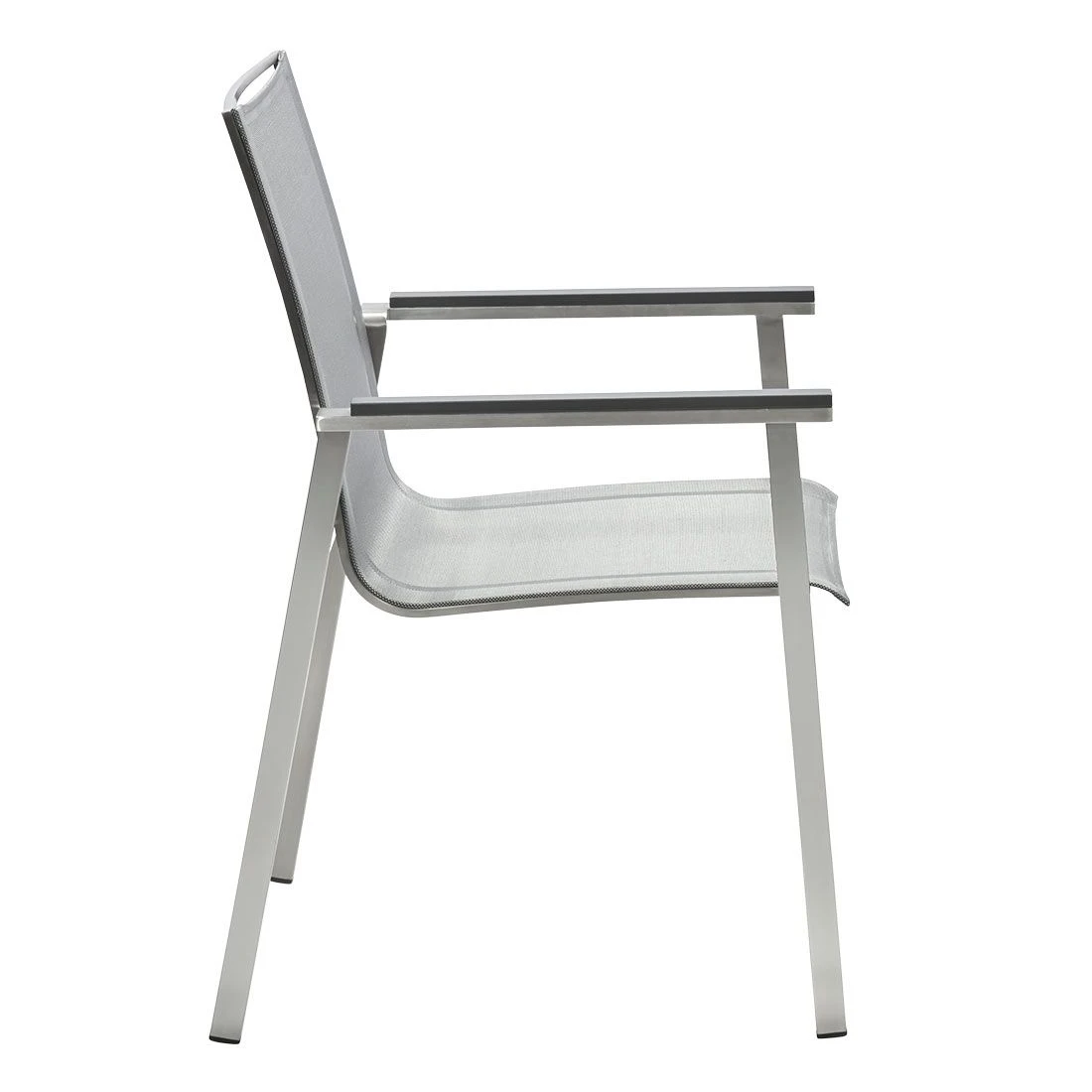 Das Gestell wird aus hochwertigem und rostfreiem Edelstahl hergestellt. Aufgrund des etwas höheren Eigengewichts, steht der Stapelsessel dadurch besonders stabil und windsicher auf der Terrasse. Für eine attraktive Optik ist das Gestell im Farbton Silber gehalten. Für die Bespannung der Sitzfläche verlässt sich der Hersteller auf hochwertiges Textilene. Es zeichnet sich durch eine hohe Robustheit gegenüber Hitze und Frost aus und ist leicht zu reinigen. Die Farbgestaltung der Sitzfläche in Silbergrau ist überaus ansprechend.