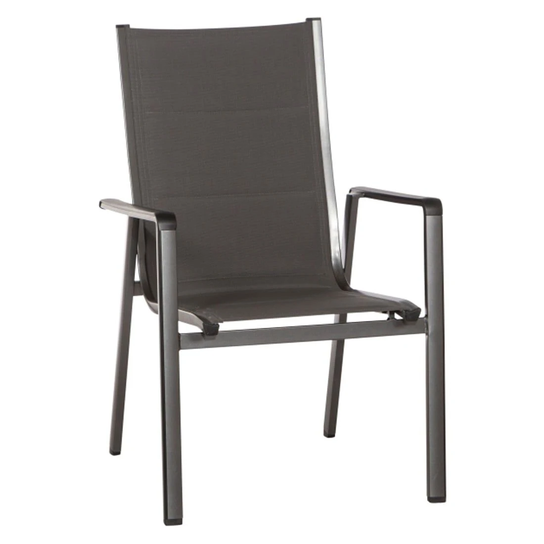 Die Sitzfläche und der Bezug sind aus Textilene gefertigt. Damit der Stapelsessel optisch ansprechend ist, sind die Sitzfläche und der Bezug im Farbton Grau gehalten. Für die Herstellung des Gestells wird hochwertiges und wetterfestes Aluminium verwendet. Farblich ist dieses in Anthrazit gehalten.