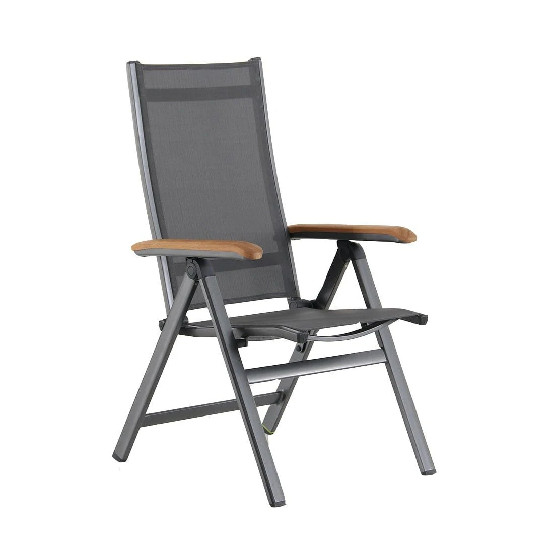 Für die Herstellung des Gestells wird hochwertiges und wetterfestes Aluminium verwendet. Für eine attraktive Optik ist das Gestell im Farbton Eisengrau (Anthrazit) gehalten. Ein weiteres Highlight des Klappsessels ist die Bespannung mit Textilene in der Farbe Anthrazit. Dieser Bezugsstoff überzeugt durch eine hohe Robustheit gegenüber Hitze und Frost und ist leicht zu reinigen. Die Sitzfläche ist in ansprechendem Anthrazit gehalten.