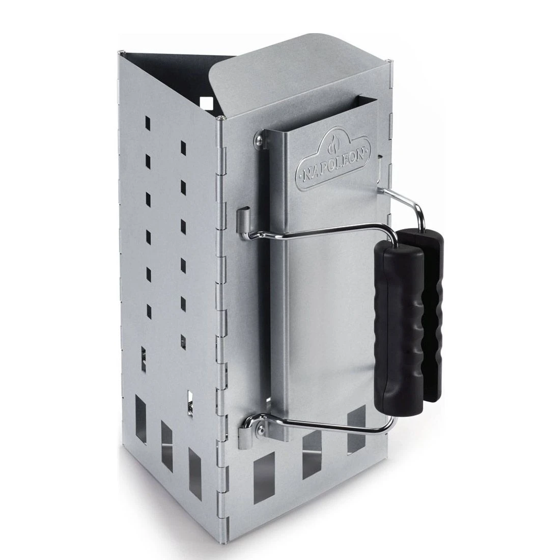 Napoleon® Anzündkamin für maximale Luftzirkulation und 30% schnelleres Anzünden. Die Holzkohle tritt durch das eckiges Design punktgenau aus. Ein Schutzschild bewahrt Ihre Hand beim Einfüllen vor Hitze.