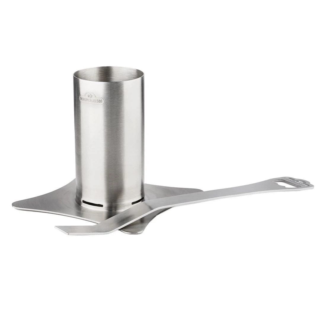 Napoleon® Hähnchenhalter mit einem Fassungsvermögen von 250 ml. Für das klassische Bierdosen-Hähnchen. Auch andere Flüssigkeiten wie Marinaden, Wein oder Säfte sind für diesen Halter bestens geeignet. Mehr Platz im Grill dank abnehmbarem Griff. Abmessungen aufgebaut: 12,5 cm x 12 cm x 31 cm (B x H x T).