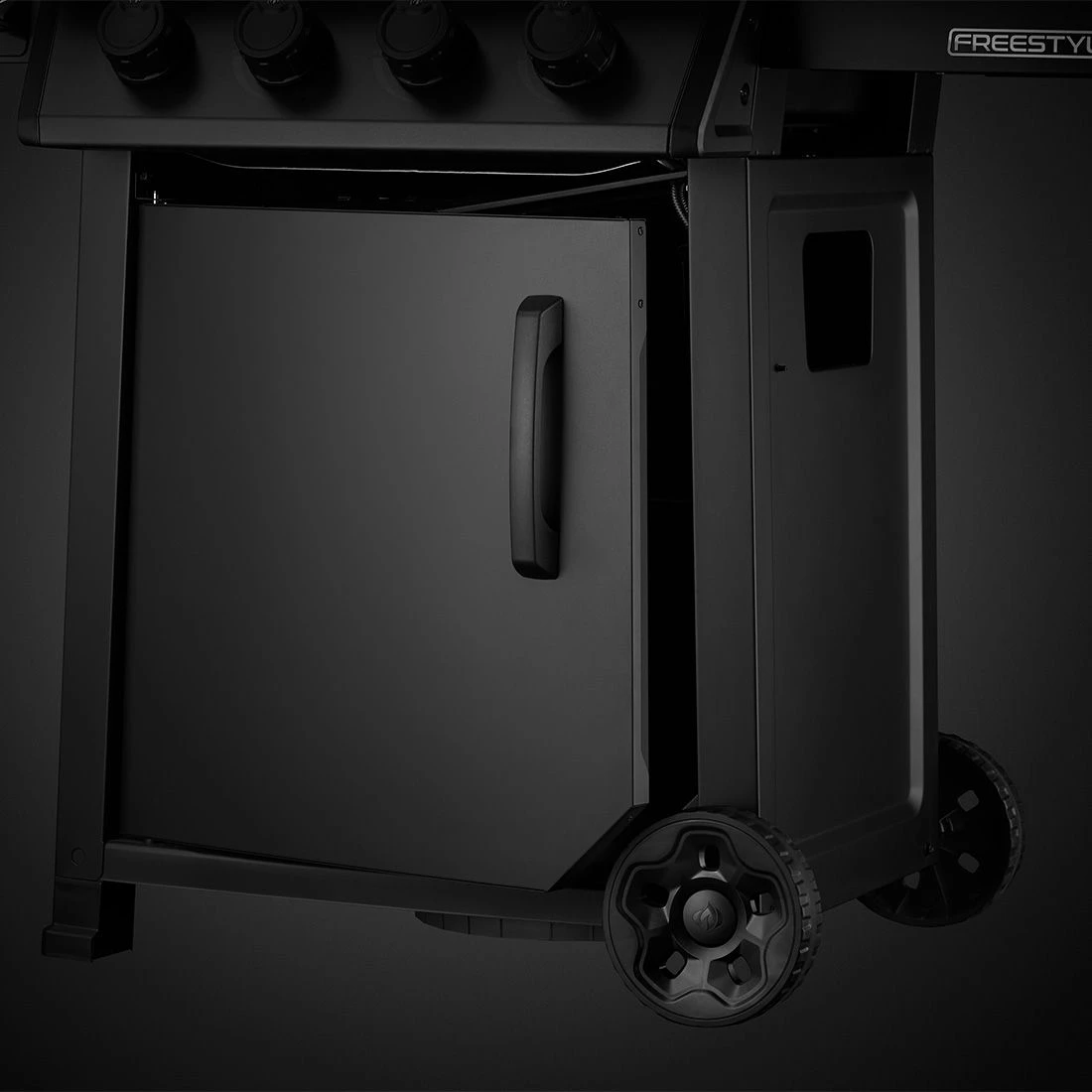 Der mattschwarze Phantom Freestyle 425 Propan-Gasgrill mit Infrarot-SIZZLE ZONE™-Seitenbrenner ist ein kompakter Grill mit erstklassigen Funktionen und einem unschlagbaren Preis-Leistungs-Verhältnis. Mit dem Flammenstrahl des JETFIRE Zündsystems werden die Hauptbrenner schnell, einfach und zuverlässig angezündet. Dieser elegante schwarze Grill verfügt über wartungsfreie Grillroste aus Edelstahl und einen integrierten multifunktionalen Grillrost – ideal für Gäste.