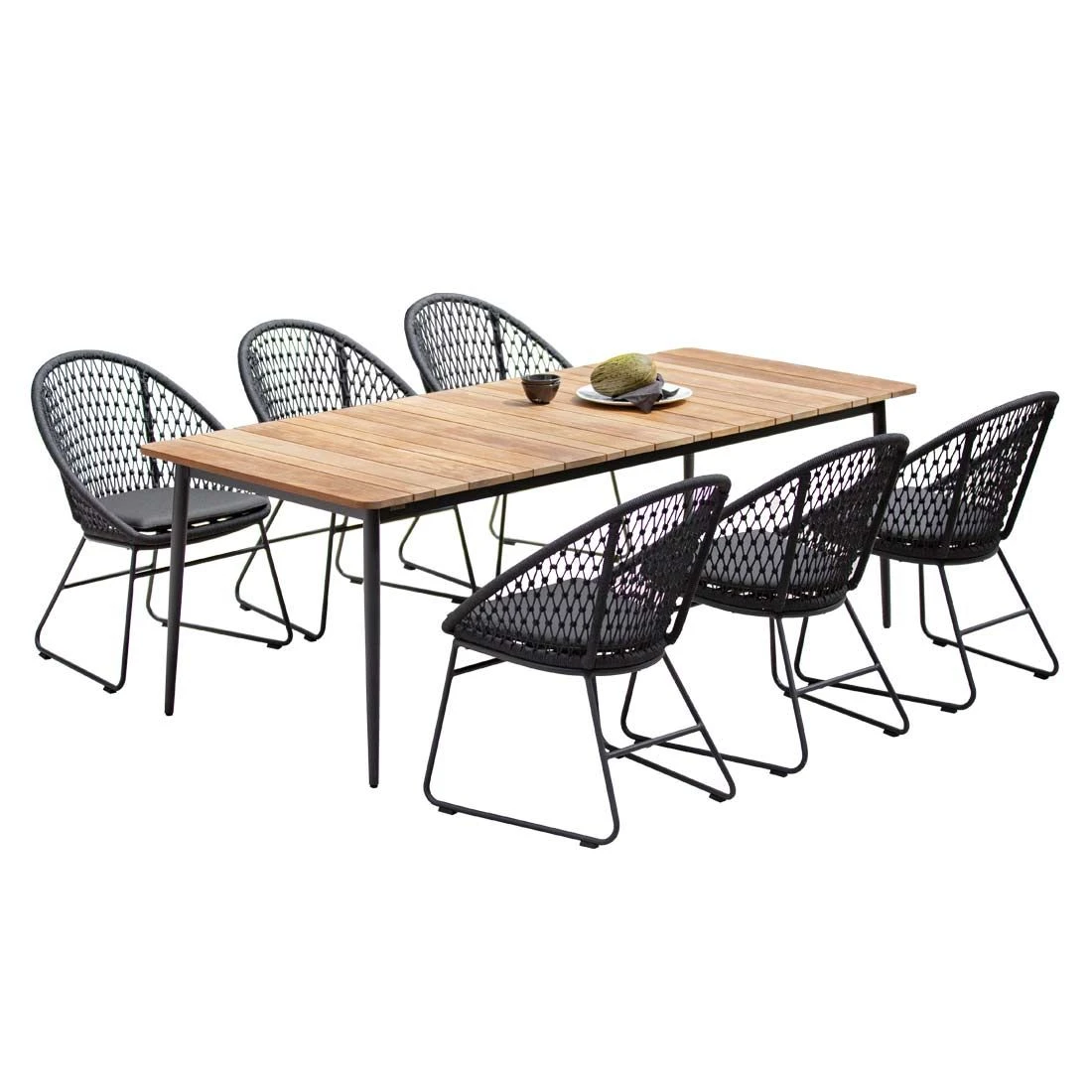 Das Gestell ist aus Aluminium gefertigt. Dadurch lassen sich die Möbel leicht von einem Standort zum nächsten transportieren und sind dennoch sehr stabil. Die stylische Rope-Bespannung, die das Gestell umgibt, rundet das Gesamtbild des Sets stilvoll ab.