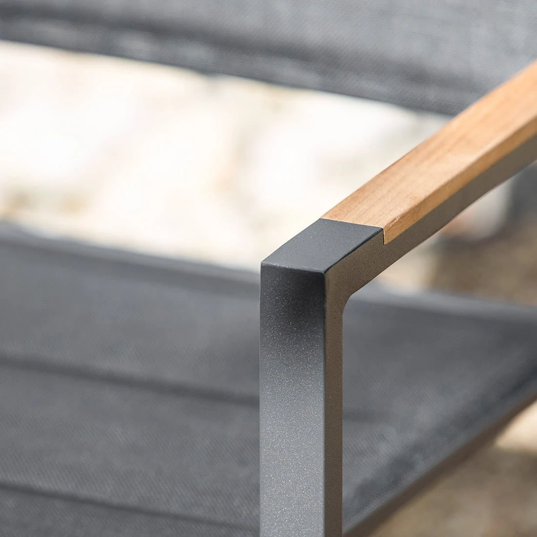 Für die Herstellung des Gestells wird hochwertiges und wetterfestes Aluminium verwendet. Farblich ist dieses in Anthrazit gehalten.