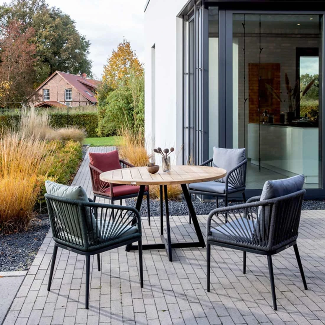 Draußen schöner wohnen – mit Produkten von Niehoff Garden. Niehoff ist seit mehr als 40 Jahren ein Begriff für schöne Esszimmer. Als familiengeführtes Unternehmen bietet es seit 1978 eine große Auswahl an Esstischen, Stühlen und Bänken an. Und weil Niehoff selbst gemütliche Runden mit Freunden und Familie liebt, hat das Unternehmen bei sommerlichen Essen draußen immer wieder große Tische und passende Stühle vermisst. So kamen die Designer auf die Idee, Niehoff Garden zu gründen und zu einer Marke für hochwertige Gartenmöbel weiterzuentwickeln. Tradition und Innovation gehen bei dabei Hand in Hand: Die langjährige Erfahrung im Indoor-Bereich verleiht den Experten ein besonderes Gespür für Materialien und einen geschärften Sinn für Qualität.