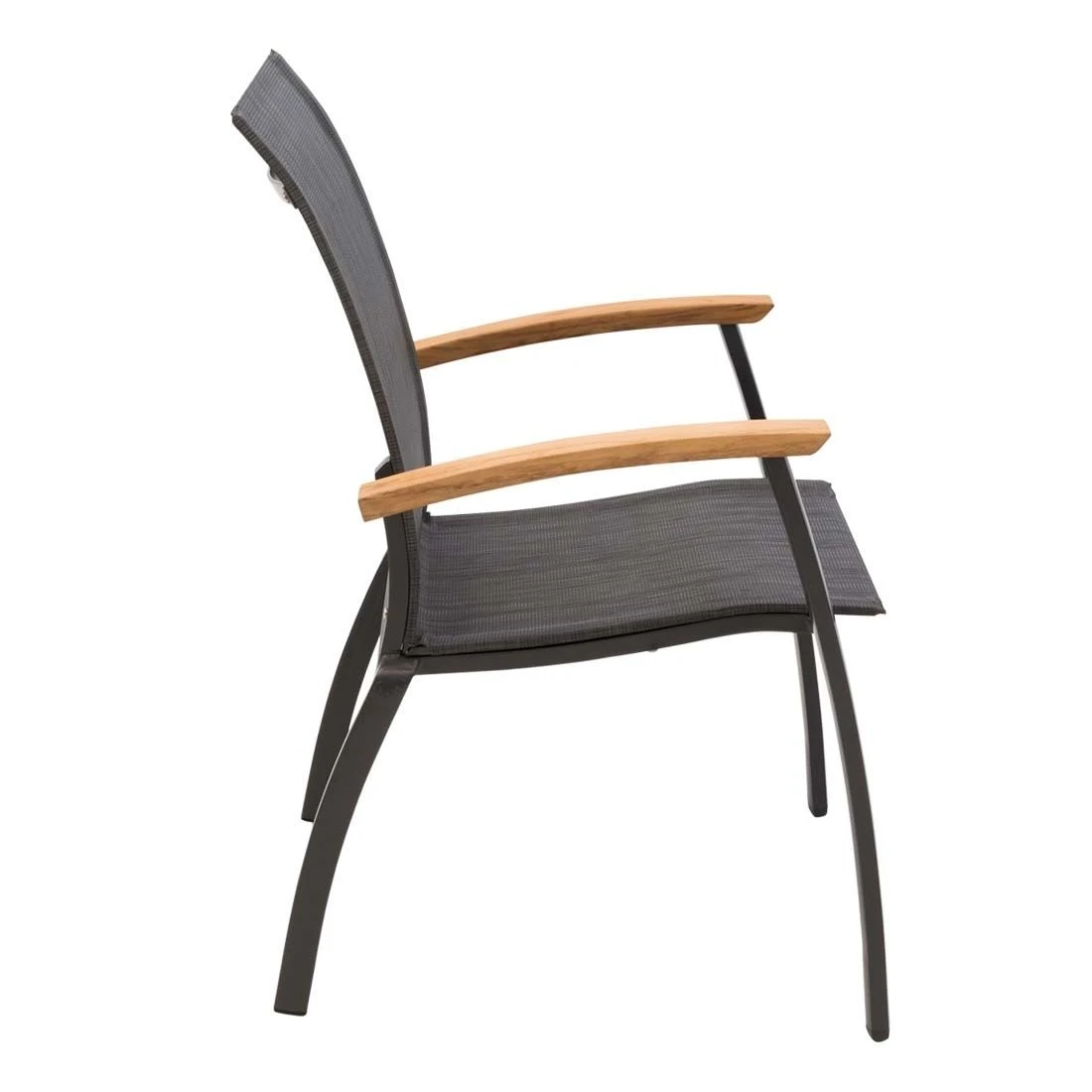 Das Gestell wird aus Aluminium gefertigt. Das geringe Eigengewicht des Materials macht den Stapelsessel zu einem robusten, aber dennoch leicht zu transportierenden Sitzmöbel auf Ihrer Terrasse. Für eine attraktive Optik ist das Gestell im Farbton Anthrazit gehalten. Ein weiterer Pluspunkt des Stapelsessels ist die Bespannung mit Textilene in der Farbe Grau. Dieser Bezugsstoff überzeugt durch eine hohe Robustheit gegenüber Hitze und Frost und ist leicht zu reinigen. Die Sitzfläche ist in ansprechendem Grau gehalten.