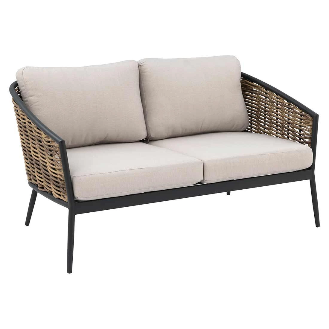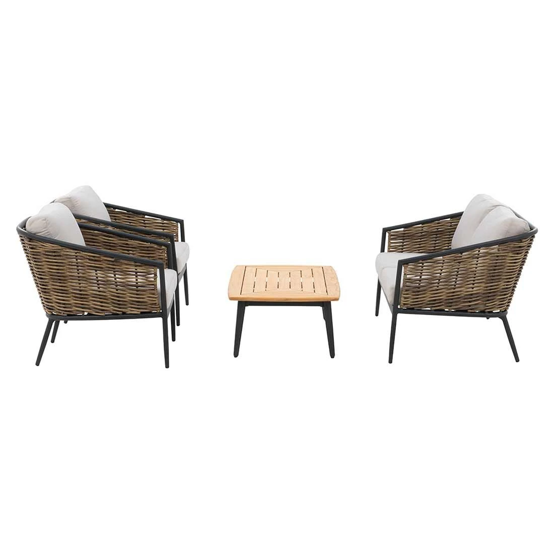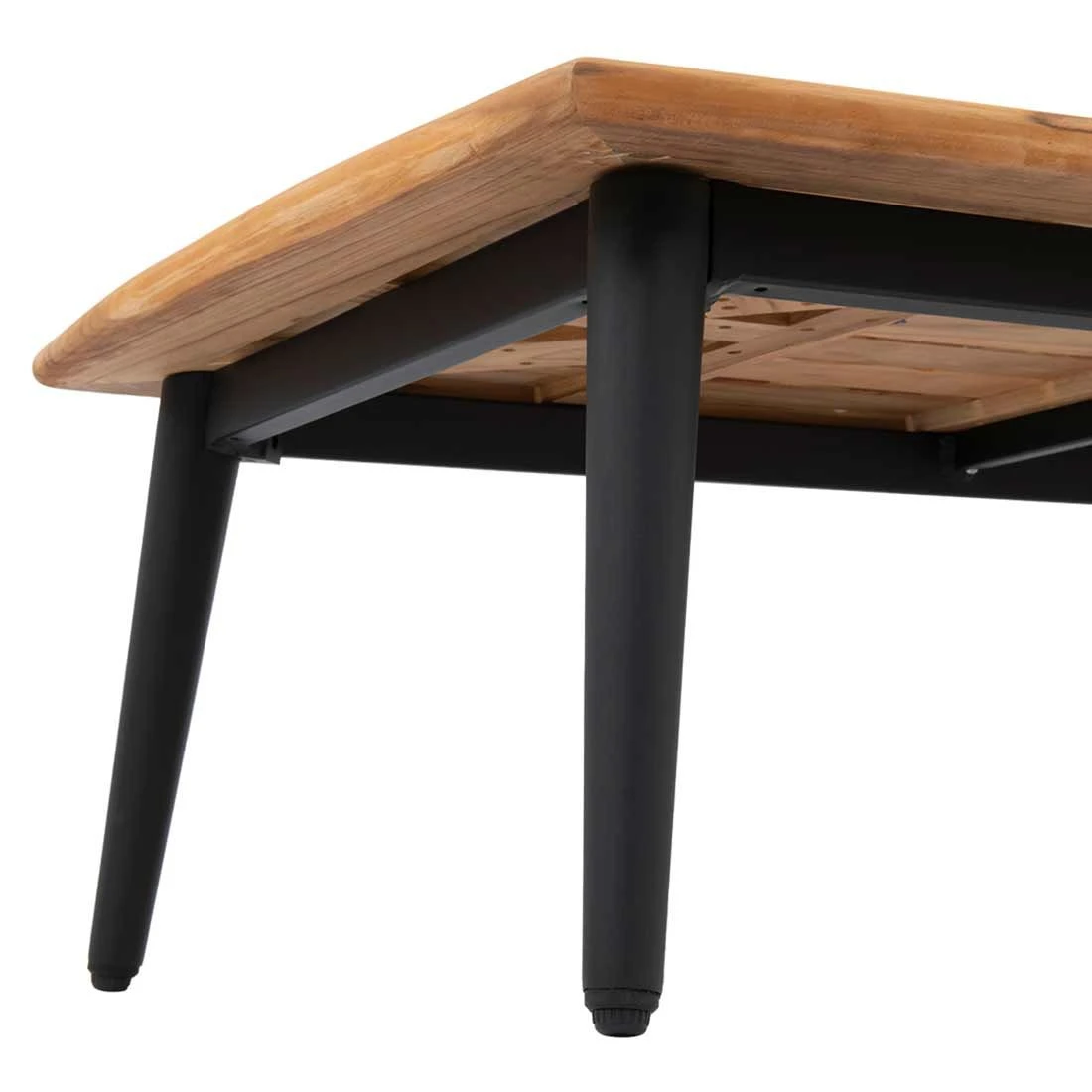 Als Material des Gestells hat der Hersteller hochwertiges Aluminium gewählt. Optisch begeistert das Gestell in der Farbe Anthrazit. Für die Bespannung der Sitzfläche wird hochwertiges Rope verwendet. Es zeichnet sich durch eine hohe Robustheit. Die Kissen sind mit dem Outdoorstoff Spunpolyester bezogen. Dieses Material ist besonders wetterfest und UV-beständig. Zugleich bietet der Stoff eine angenehme Haptik und Komfort. Die Farbe des Bezugs ist Ivory. Die Platte des Tisches ist aus hochwertigem Teak hergestellt. Durch den sehr hohen natürlichen Ölanteil ist sie bereits von Haus aus einwandfrei vor Witterungseinflüssen geschützt. Die Tischplatte ist Natur.