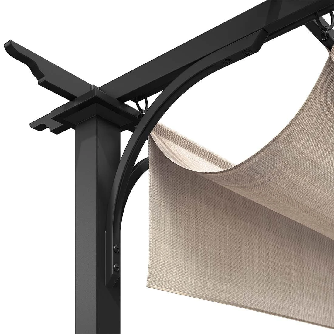 Gefertigt ist das stabile Gestell aus schwarzem Stahl. Dieses Material ist überaus wetterbeständig und daher ideal, um im Outdoor-Bereich eingesetzt zu werden. Für die optimale Beschattung verfügt die OUTLIV. Pergola über eine durchdachte Konstruktion, die sich mithilfe des beigefarbenen Stoffdachs überdecken lässt.