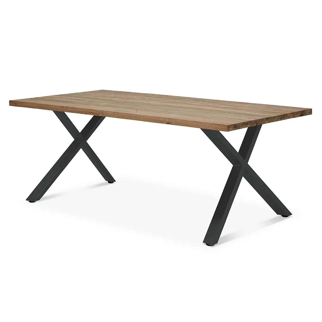 Das Gestell besteht aus pflegeleichtem und rostfreiem Edelstahl. Dass ein MöbelstĂŒck auch ein Hingucker sein kann, beweist dieses Modell mit seinem auĂergewöhnlichen Gestell in X-Form. Die Gebrauchsspuren in der Tischplatte sind Teil der Formensprache. Denn die Tischplatte ist aus wiederverwertetem Teak hergestellt worden, das zuvor aus alten HĂŒtten und Booten gewonnen wurden. Bei der Aufarbeitung werden dann Einkerbungen, Nagel- und Schraublöcher bewusst erhalten. Jede Tischplatte und damit jeder Gartentisch ist also ein echtes Unikat. Farblich ist die Platte in Natur gehalten. Mit der rechteckigen Form lĂ€sst sich der Gartentisch platzsparend in Ecken oder an HĂ€userwĂ€nden aufstellen.