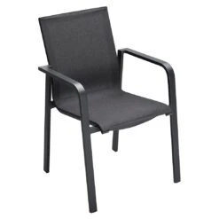 Ein weiterer Pluspunkt des Stapelsessels ist die Bespannung mit Textilene in der Farbe Coal. Dieser Bezugsstoff überzeugt durch eine hohe Robustheit gegenüber Hitze und Frost aus und ist leicht zu reinigen. Ihr Vorteil: Wenn Sie mehrere Exemplare des Modells Julia besitzen, können Sie diese äußerst kompakt und platzsparend aufbewahren, indem Sie diese stapeln. Auch eine stärkere Belastung macht dem robusten Sitzmöbel nichts aus, denn es ist bis 125 kg belastbar. Angenehm ist auch die Sitzhöhe, welche bei 45 cm liegt.