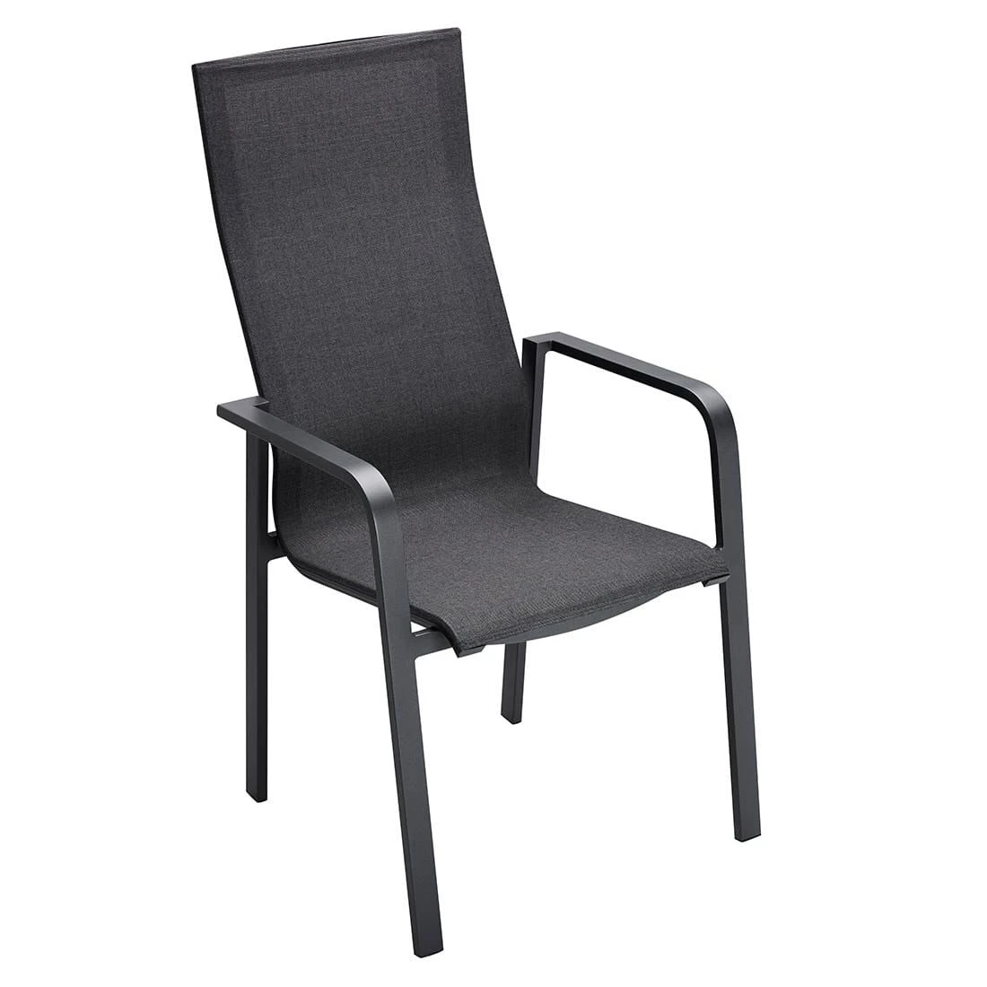 Für die Bespannung der Sitzfläche verlässt sich der Hersteller auf hochwertiges Textilene. Es zeichnet sich durch eine hohe Robustheit gegenüber Hitze und Frost aus und ist leicht zu reinigen. Der Clou: Aufeinander gestapelt können auch mehrere Exemplare des Stapelsessels platzsparend aufbewahrt werden. Die Sitzfläche hat mit 45 cm eine komfortable Höhe.