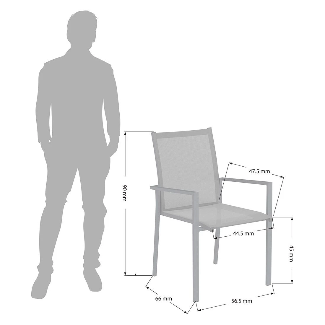 Das Gestell wird aus Aluminium gefertigt. Das geringe Eigengewicht des Materials macht den Stapelsessel zu einem robusten, aber dennoch leicht zu transportierenden Sitzmöbel auf Ihrer Terrasse. Für die Bespannung der Sitzfläche verlässt sich der Hersteller auf hochwertiges Textilene. Es zeichnet sich durch eine hohe Robustheit gegenüber Hitze und Frost aus und ist leicht zu reinigen. Für ein perfekt stimmiges Gesamtbild sorgt die einheitliche Farbgebung in stilvollem Anthrazit.