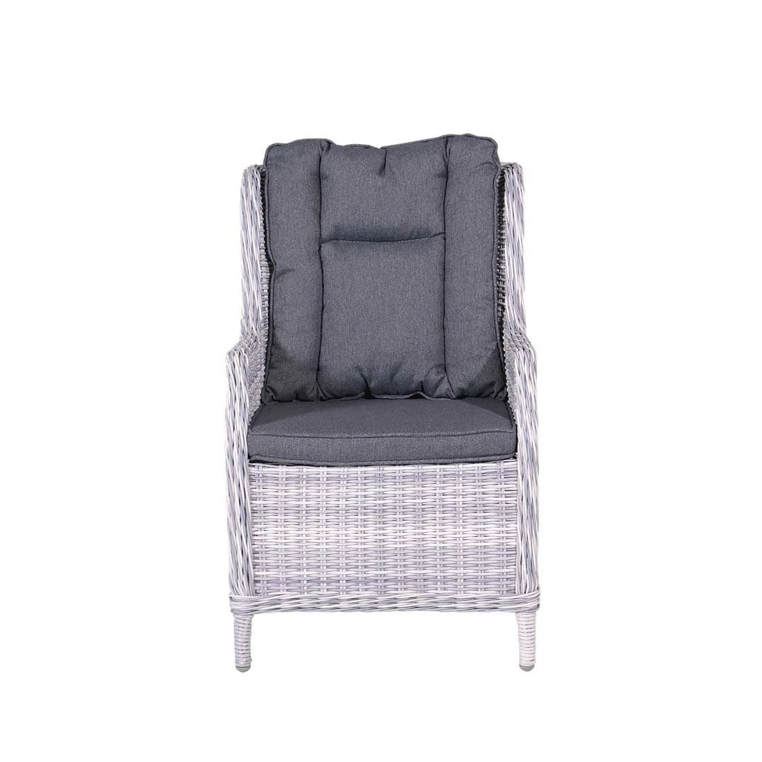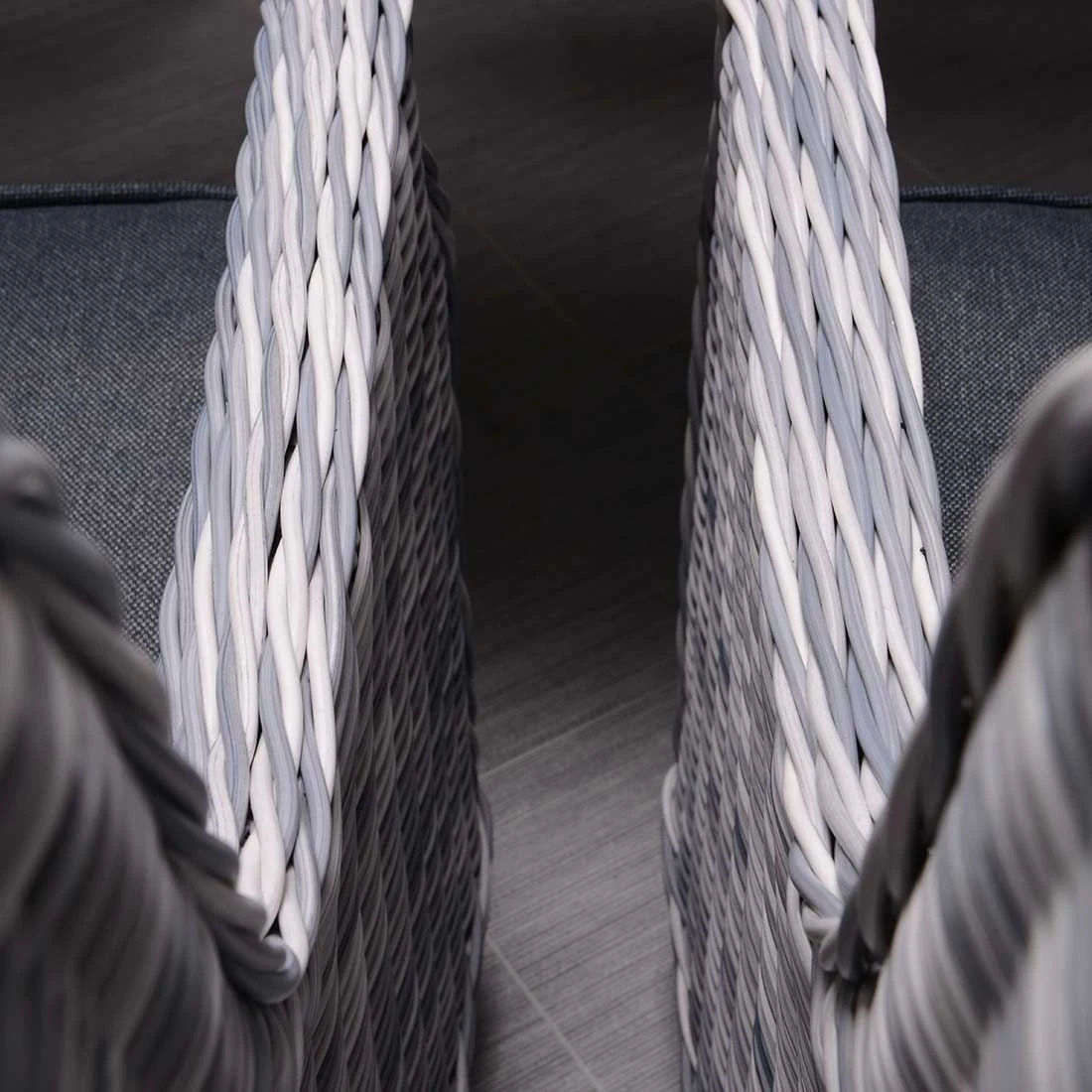 Der Korpus und die Sitzfläche bestehen aus Polyrattan-Geflecht. Das Gestell besteht aus pflegeleichtem und wetterfestem Aluminium. Als hochwertiges Material für den Bezug kommt ein Polyester-Stoff zum Einsatz. Er ist sehr strapazierfähig und bietet somit die idealen Voraussetzungen für den Einsatz im Freien. Farblich begeistert der Bezug in elegantem Anthrazit. Damit der Gartensessel optisch ansprechend ist, sind das Gestell und die Sitzfläche im Farbton Hellgrau gehalten.