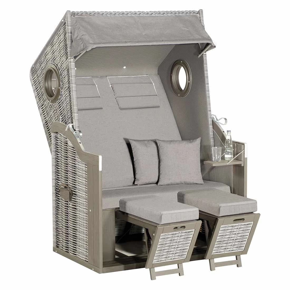 Als Bezug dient bei diesem Strandkorb ein Gewebe aus Strukturpolyester. Das Material begeistert mit der angenehmen Oberflächenstruktur und einer herausragenden Witterungsbeständigkeit. Pinienholz in Grau und das farblich darauf abgestimmte Kunststoffgeflecht fügen sich harmonisch zu einer Einheit zusammen, wodurch sich der OUTLIV. Strandkorb perfekt in viele Gartenkonzepte integrieren lässt. Das Grundgerüst des Strandkorbs ist in Grau gehalten. Äußerlich begeistert der Strandkorb Rustikal im Farbton Onix.